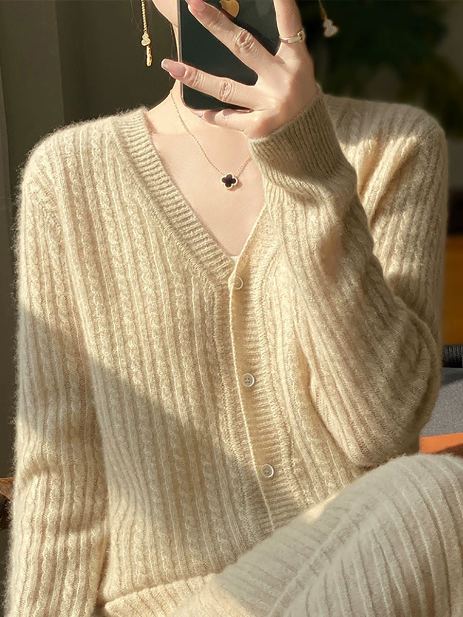 Ženski ležerni proljetni pulover s V-izrezom u čistoj boji
