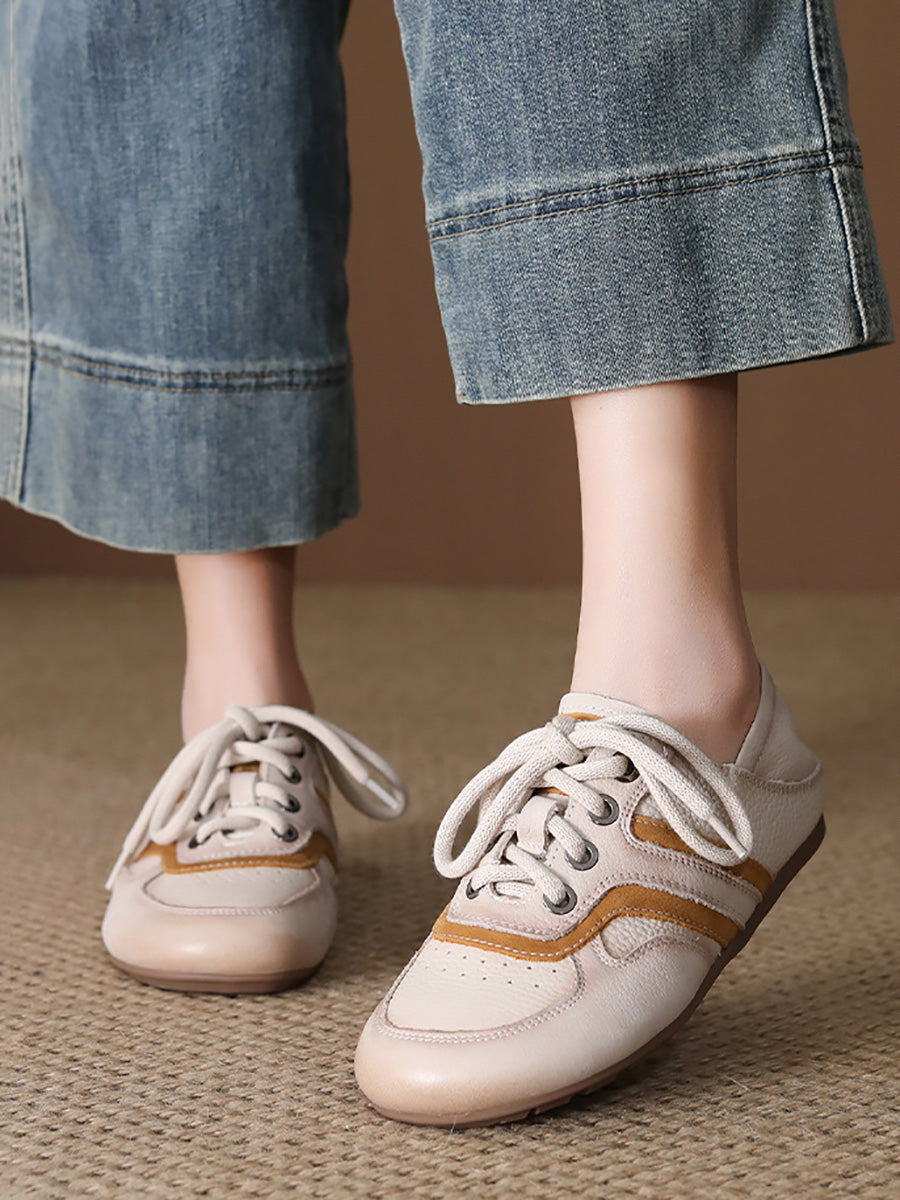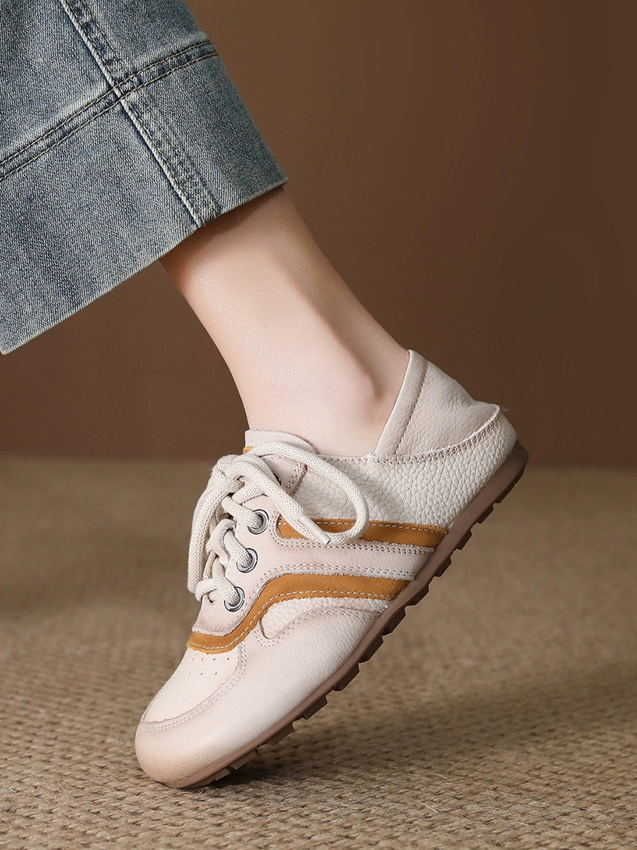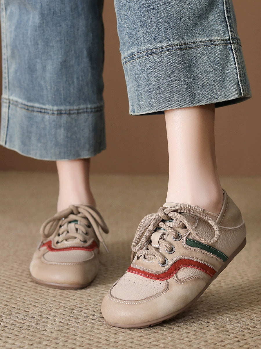 Ženske ljetne ravne cipele od prave kože s blokovima u boji