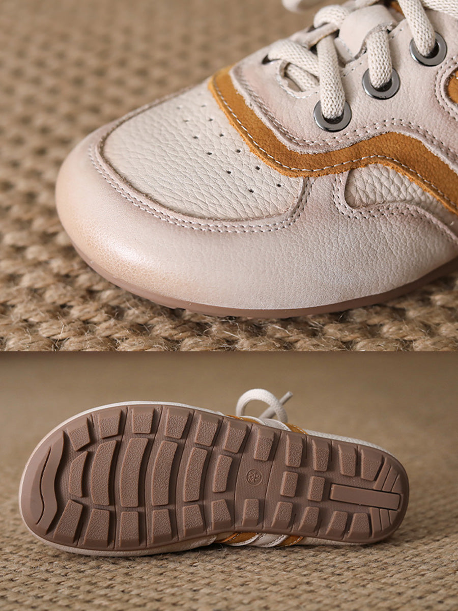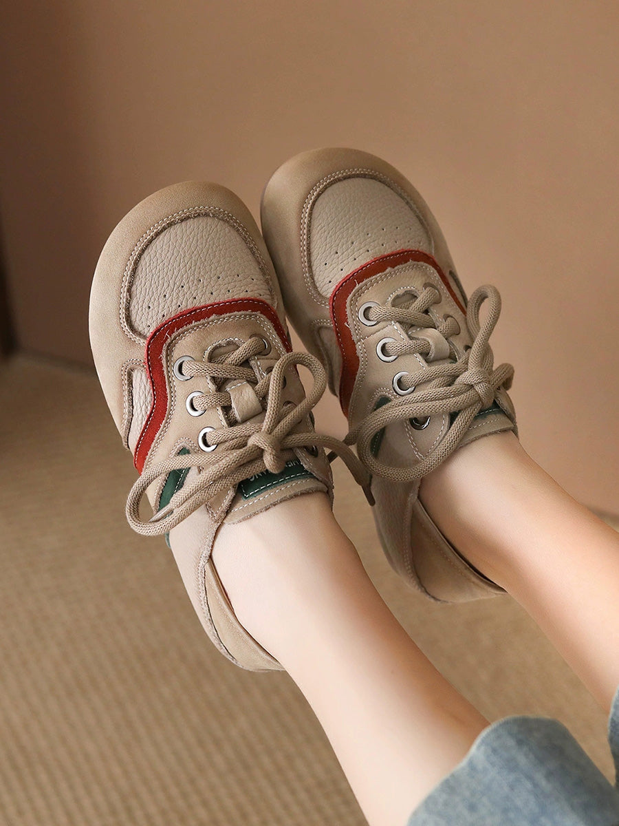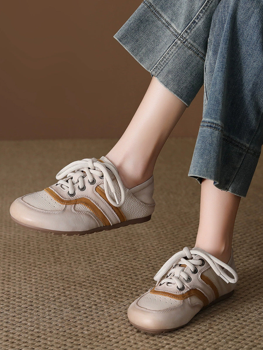 Ženske ljetne ravne cipele od prave kože s blokovima u boji
