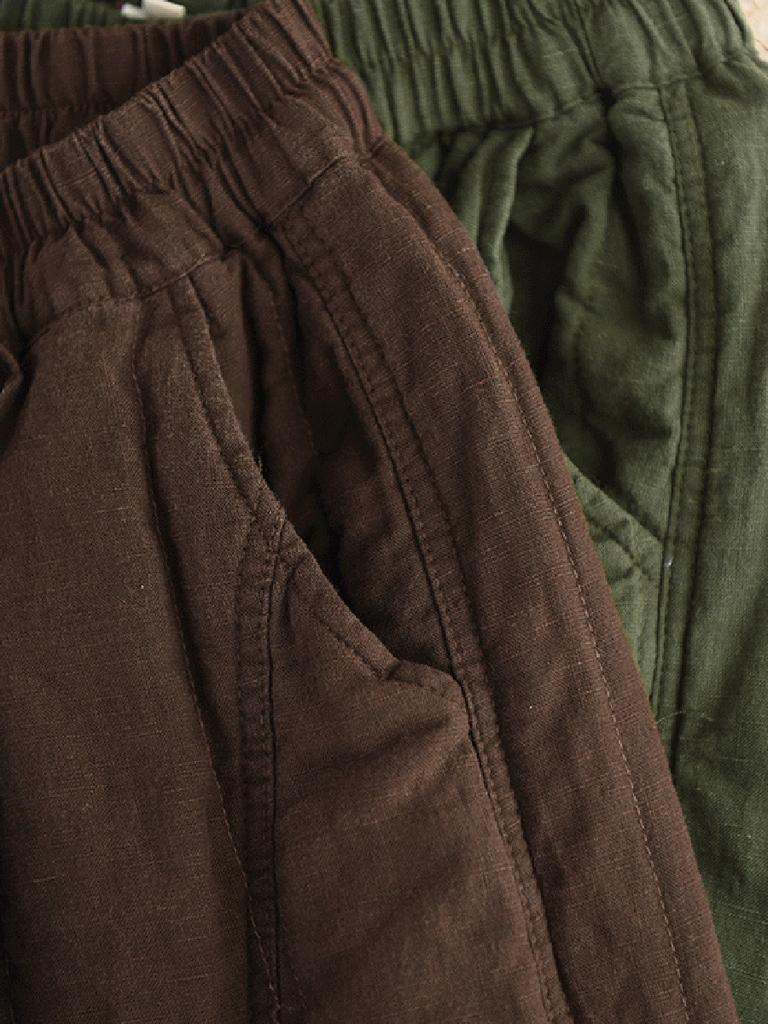 Ženske jesenske hlače od 100% lana, čiste boje, podstavljene, ravne