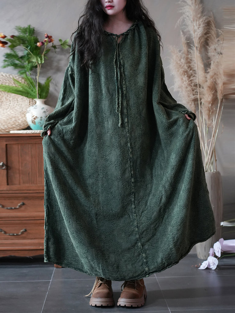 Ženska jesenska retro žakard haljina s O-izrezom, 100% lan