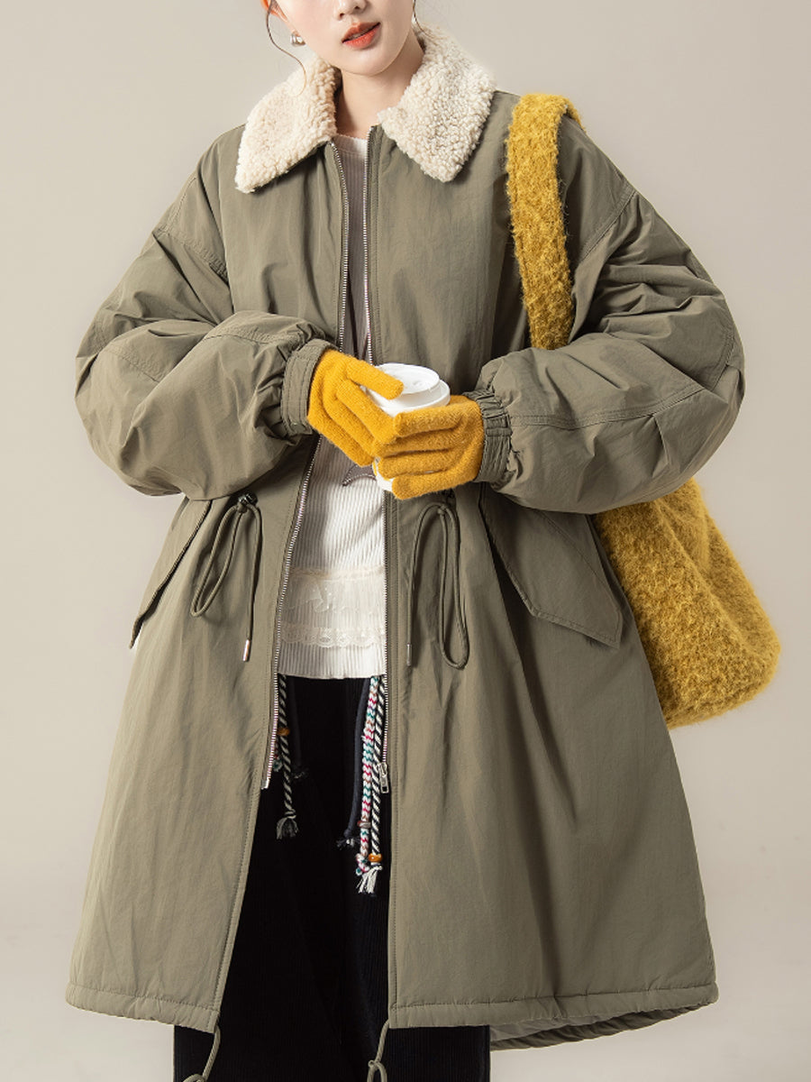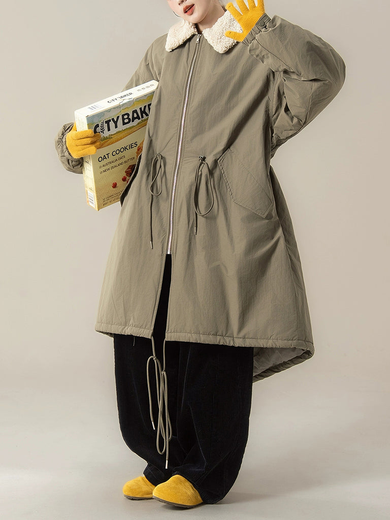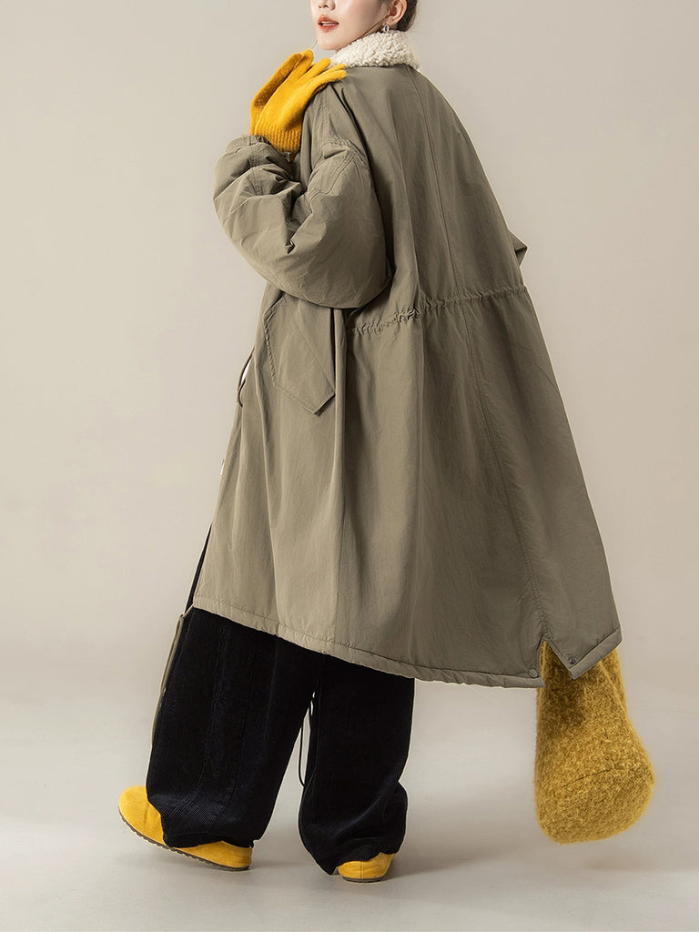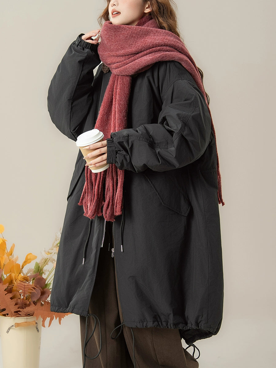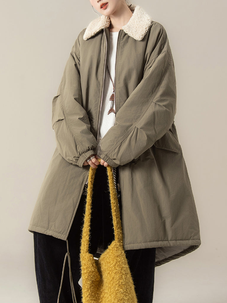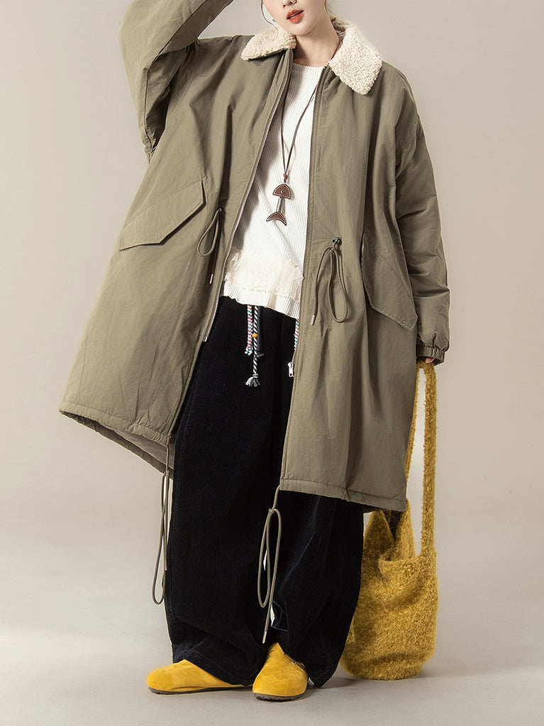 Dizajniran za zimu i jesen, ovaj kaput ima jednobojni dizajn s klasičnim ovratnikom koji se može sklopiti. Nudi raglan rukave pune duljine u retro stilu, kombinirajući bezvremensku eleganciju s praktičnom toplinom.
