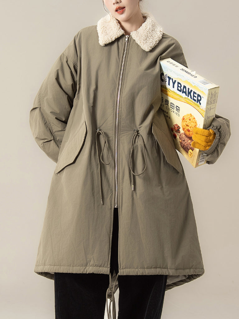 Ženski zimski kaput od flisa s ovratnikom u čistoj boji