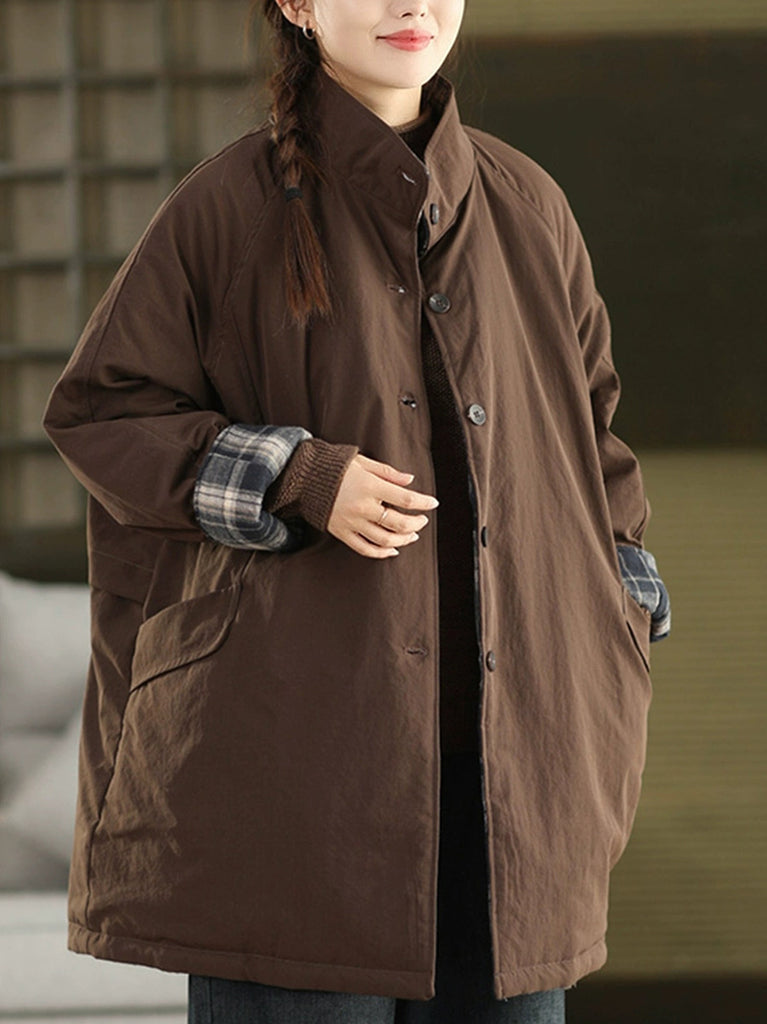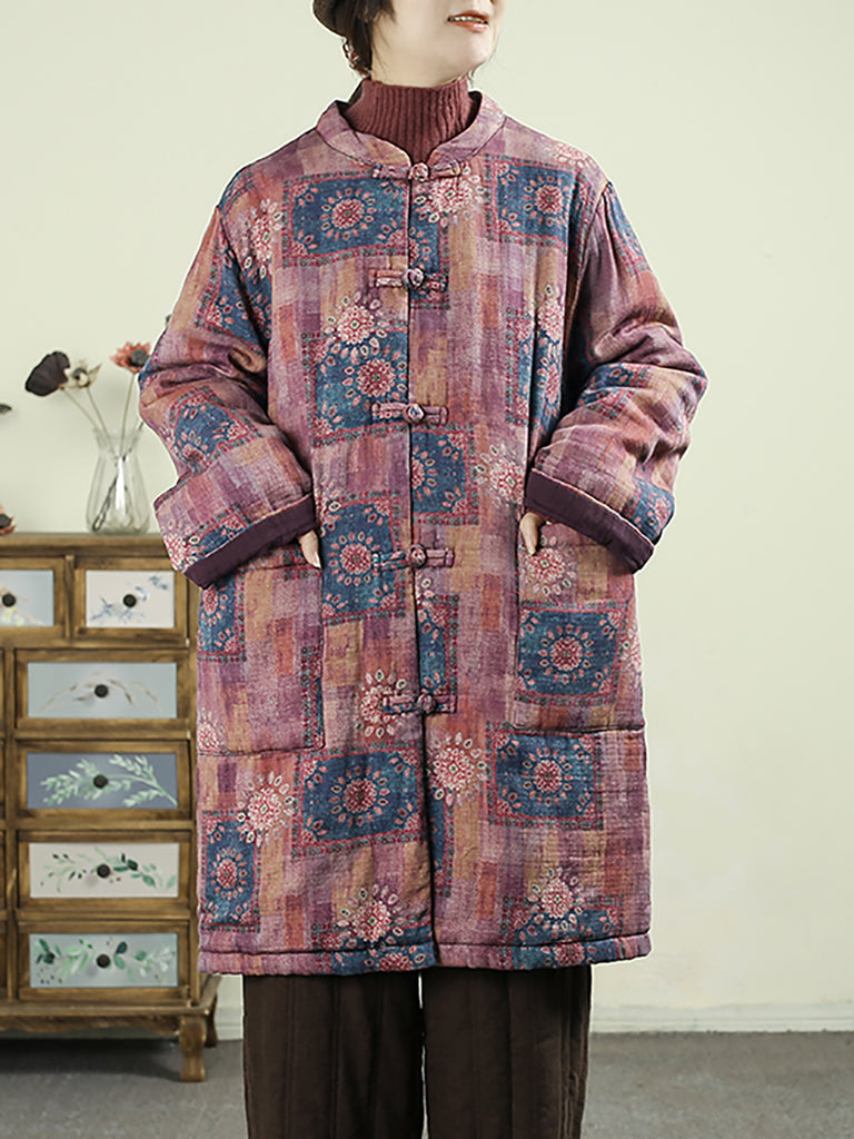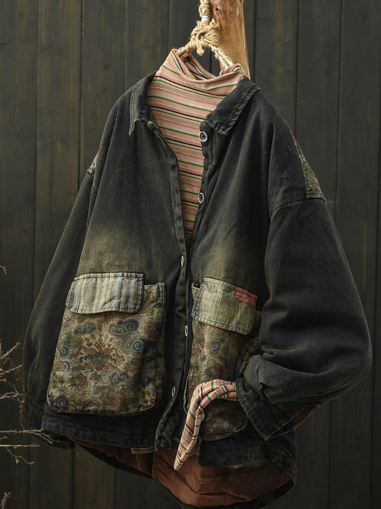 Ženski zimski podstavljeni kaput s etničkim patchworkom i ovratnikom