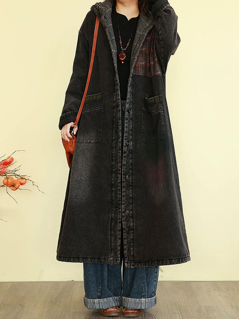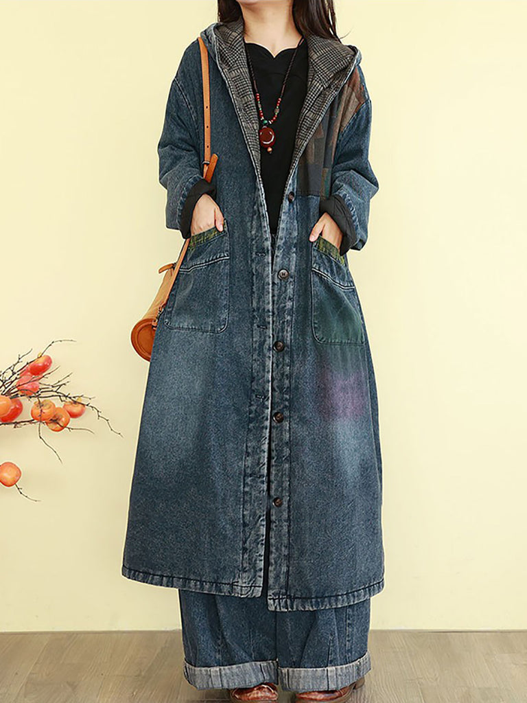 Ženski vintage traper kaput s kapuljačom i podstavom