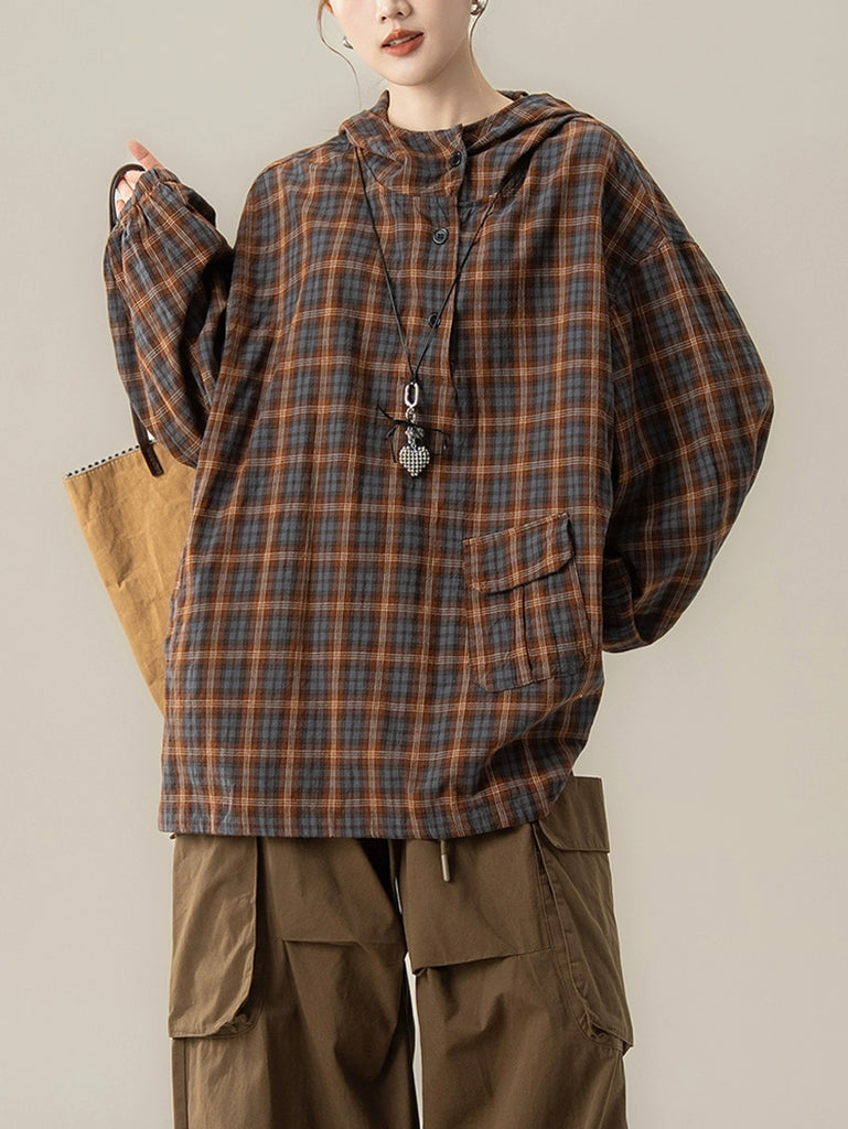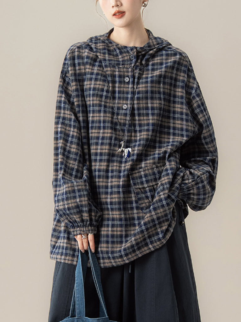 Ženska jesenska karirana bluza s kapuljačom