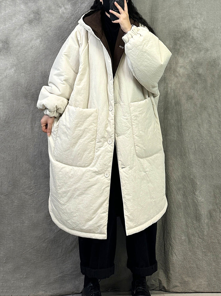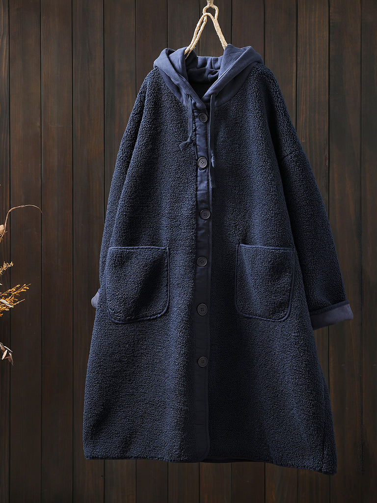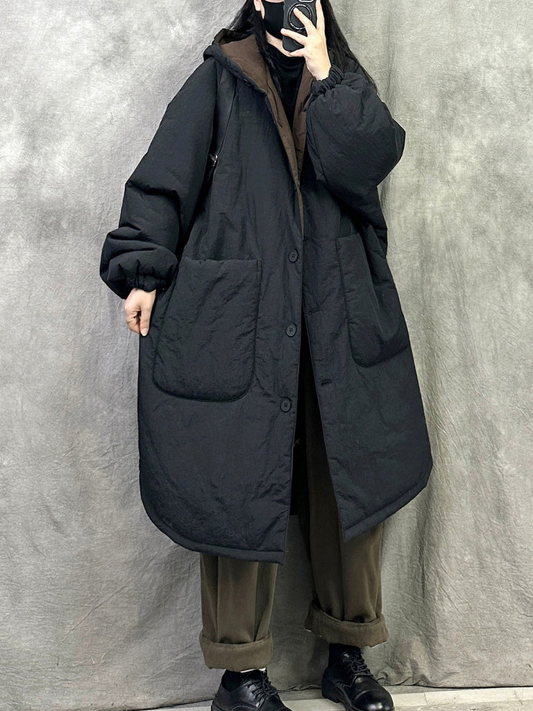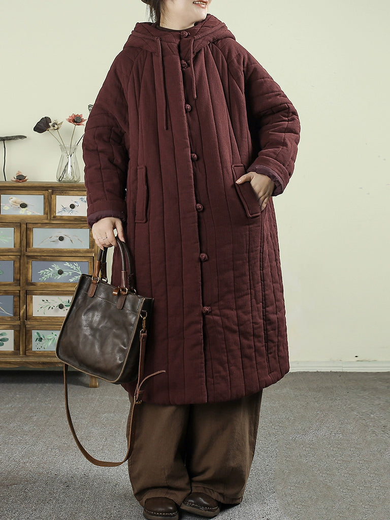 Ženski zimski vintage kaput s kapuljačom u čistoj boji