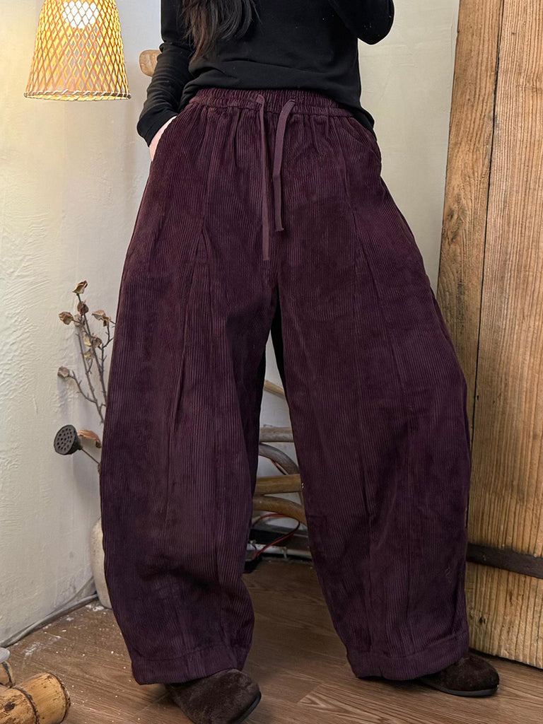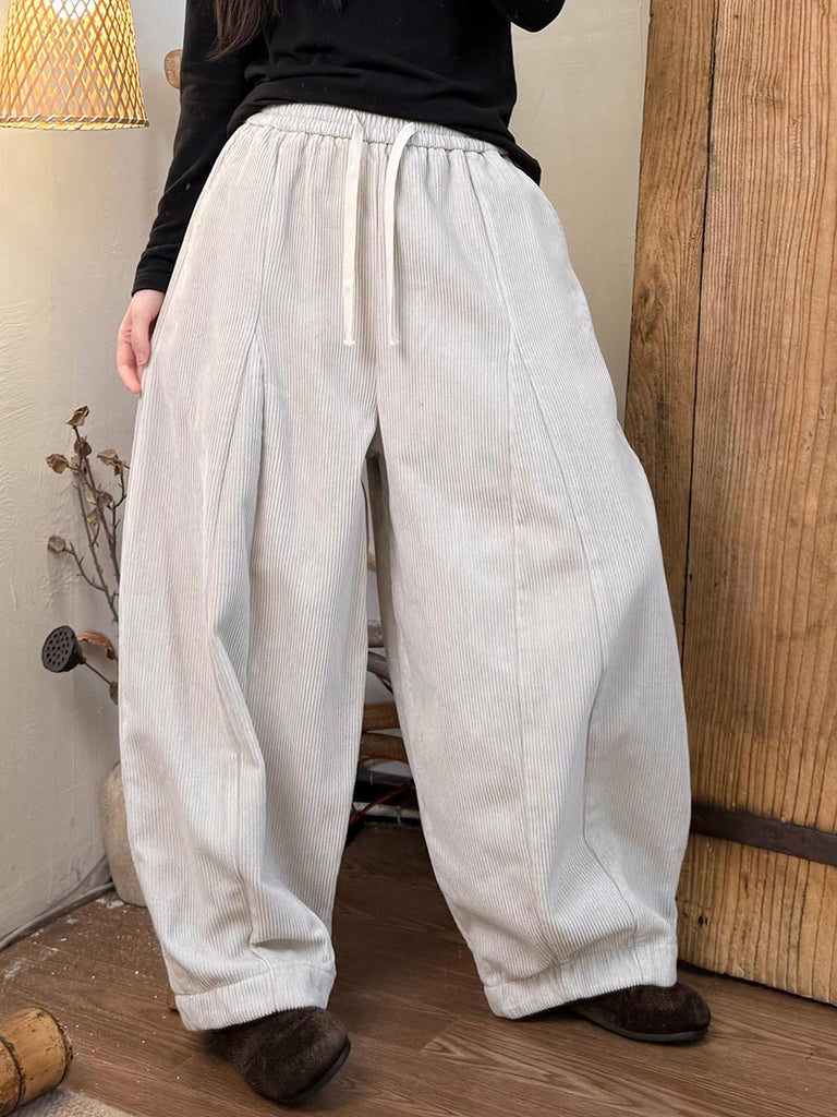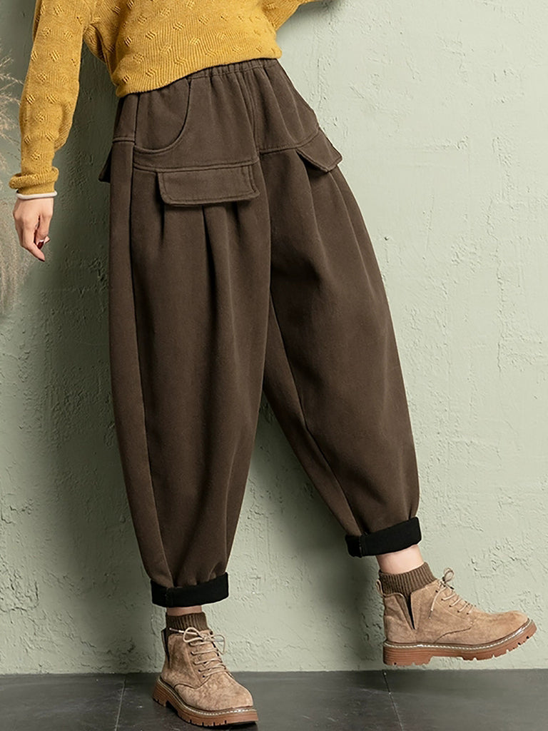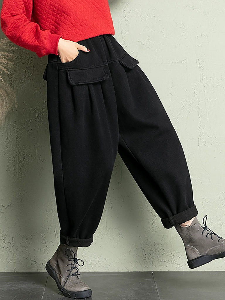 Ženske ležerne zimske harem hlače od korduroja s flis podstavom