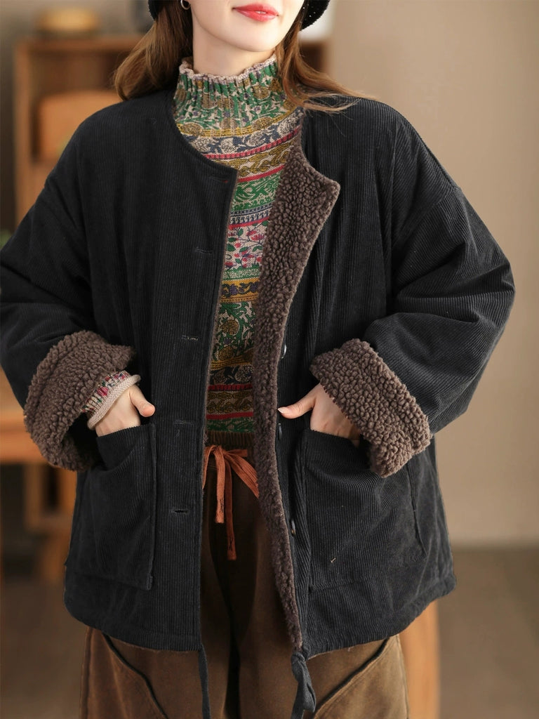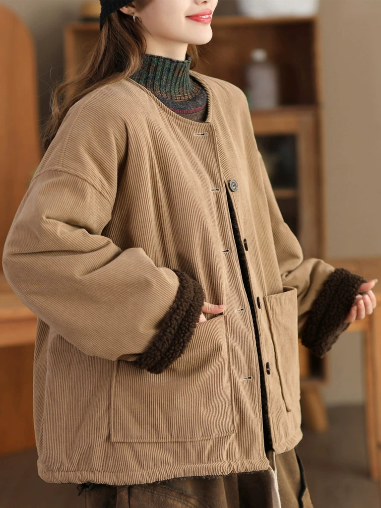 Ženska vintage zimska jakna s O-izrezom i flis podstavom
