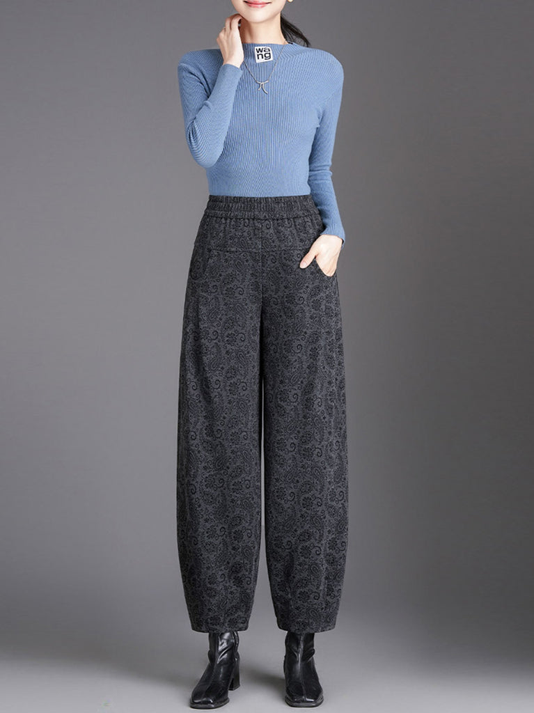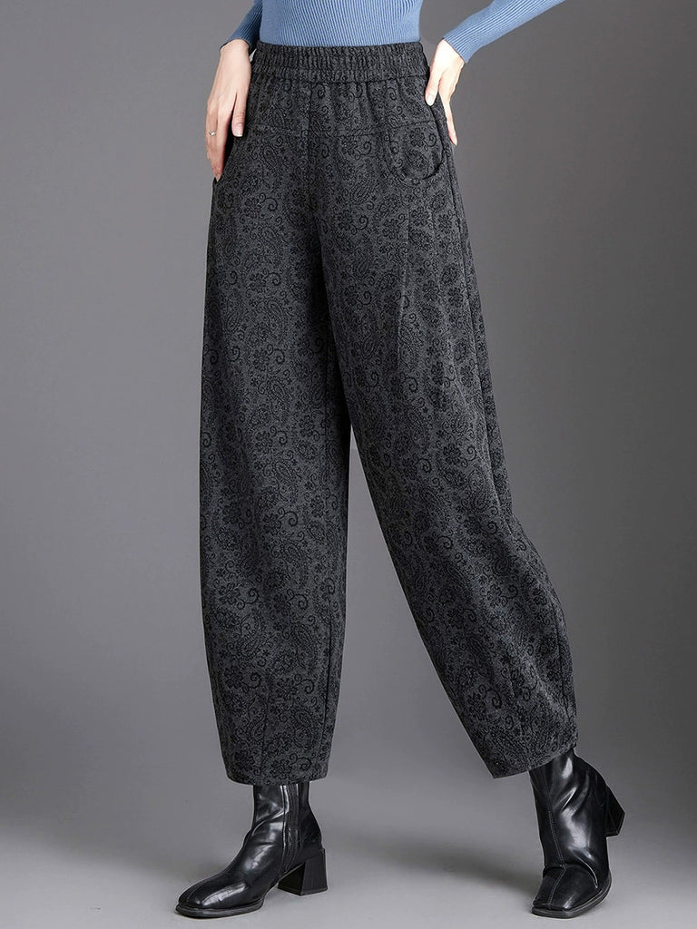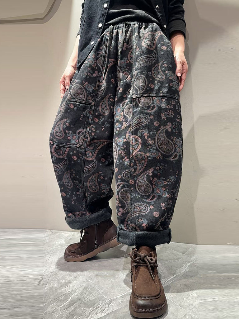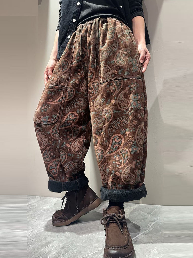 Ženske vintage harem hlače s cvjetnim uzorkom i flis podstavom
