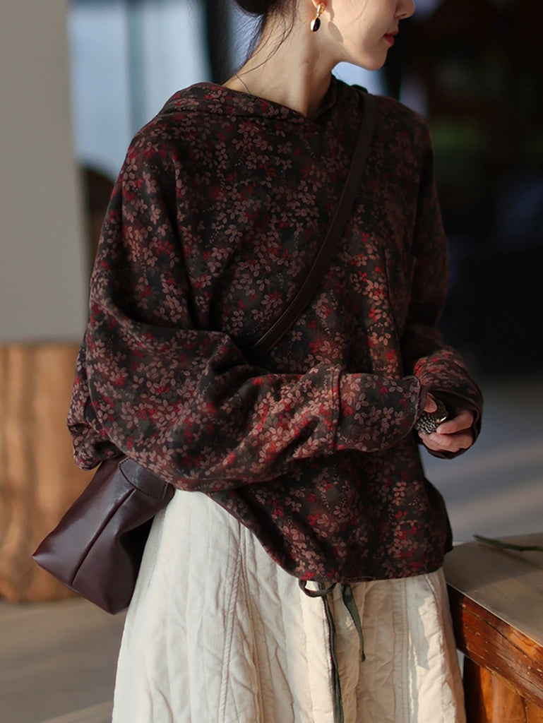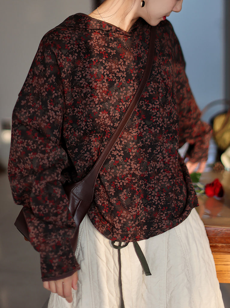 Ženska vintage jesenska cvjetna majica s flis podstavom