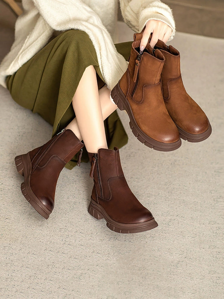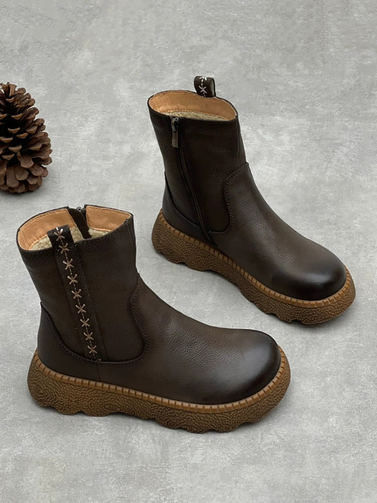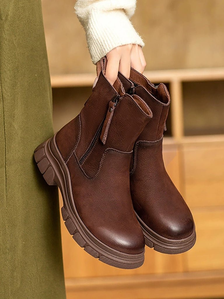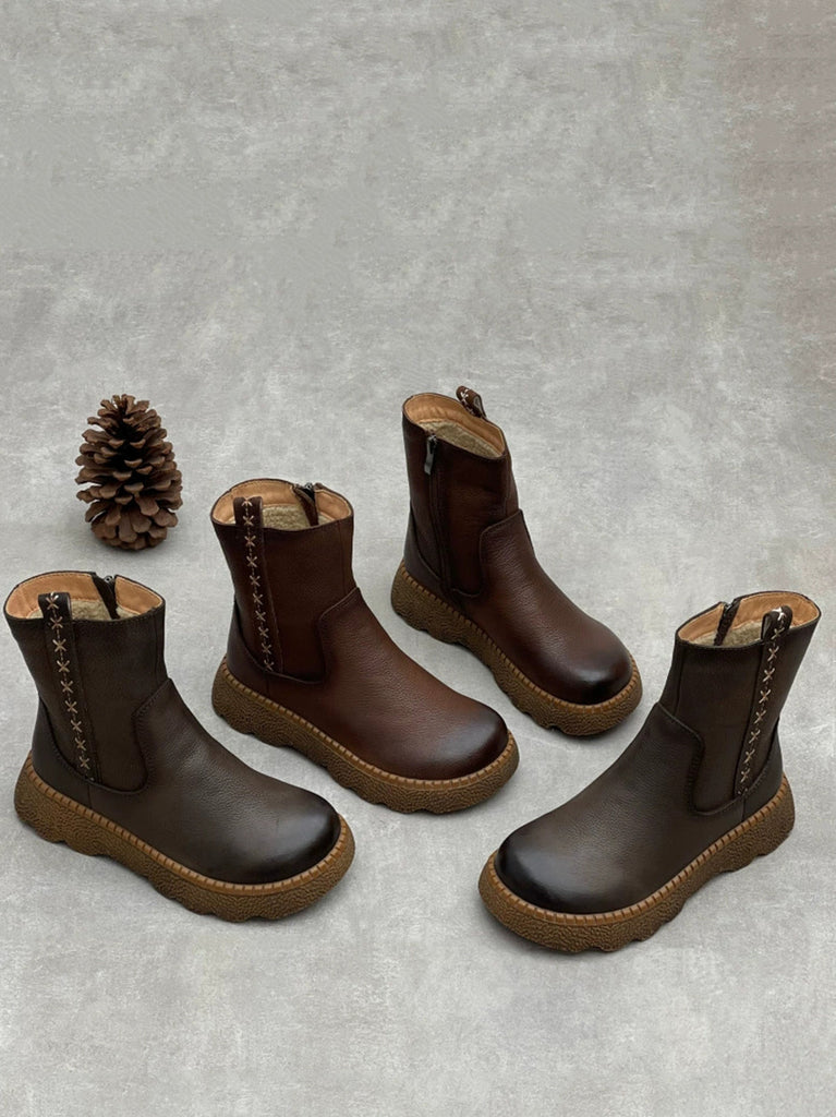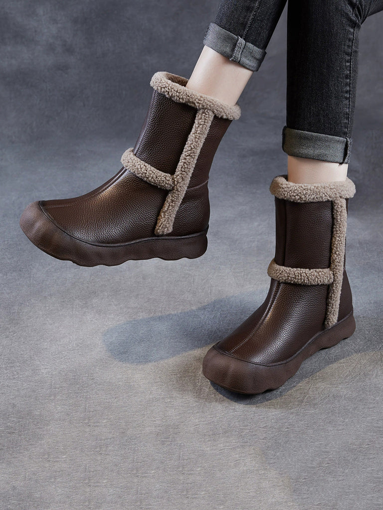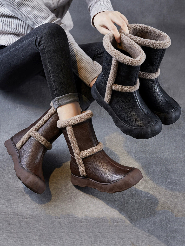 Ženske vintage zimske kožne čizme s flis podstavom