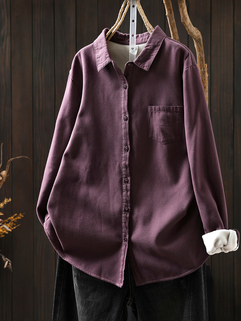 Ženska jesenska ležerna košulja s flis podstavom u čistoj boji