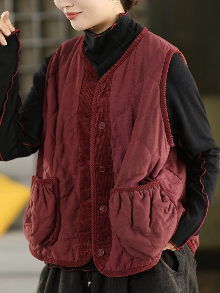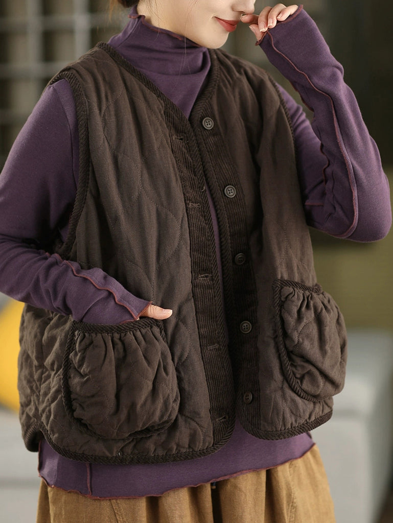 Ženski jesenski topli prsluk čistih boja s U-izrezom