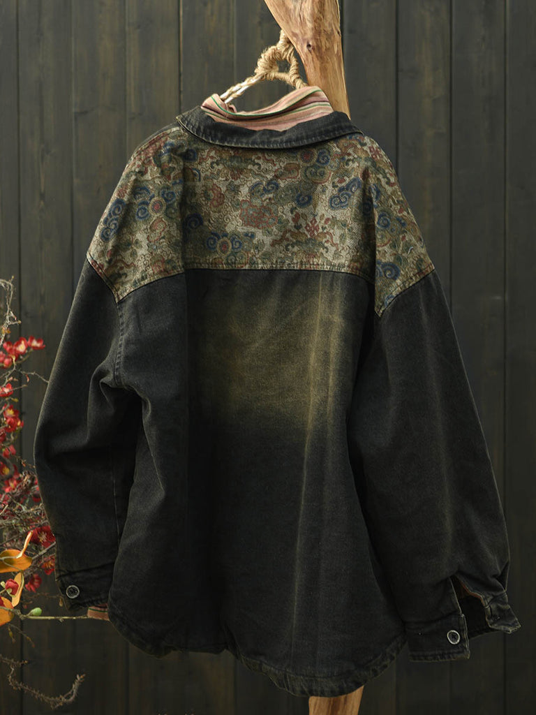 Ženski etnički cvjetni traper kaput od pamuka