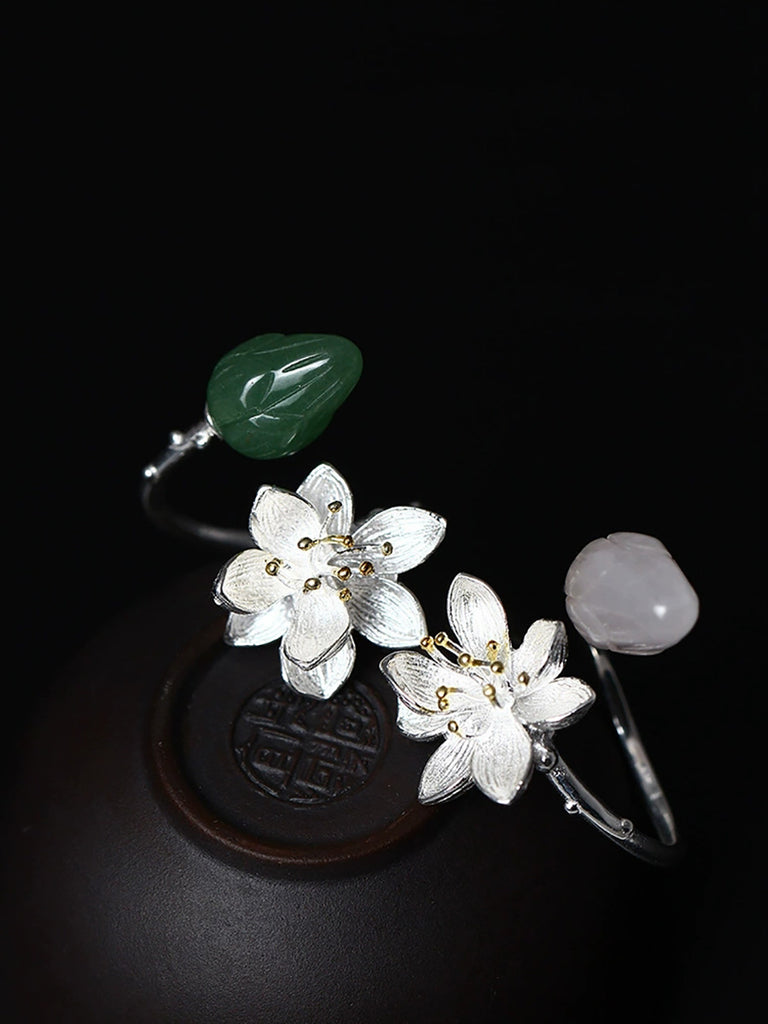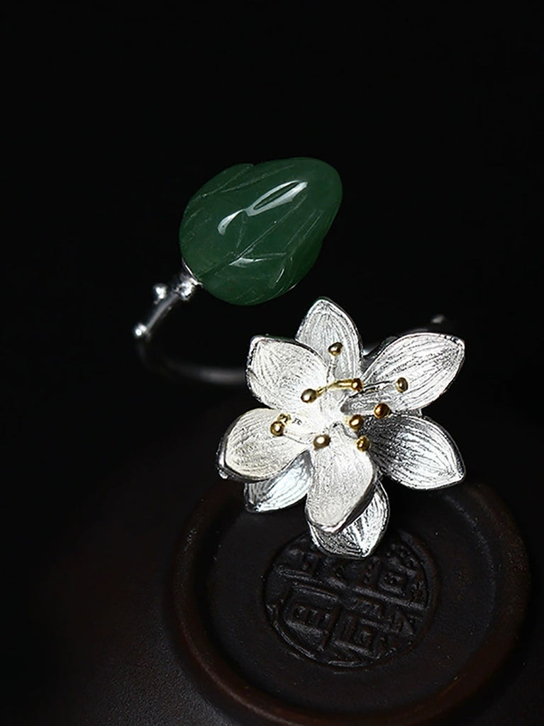 Ženski podesivi prsten od srebrnog lotosa i žada S925