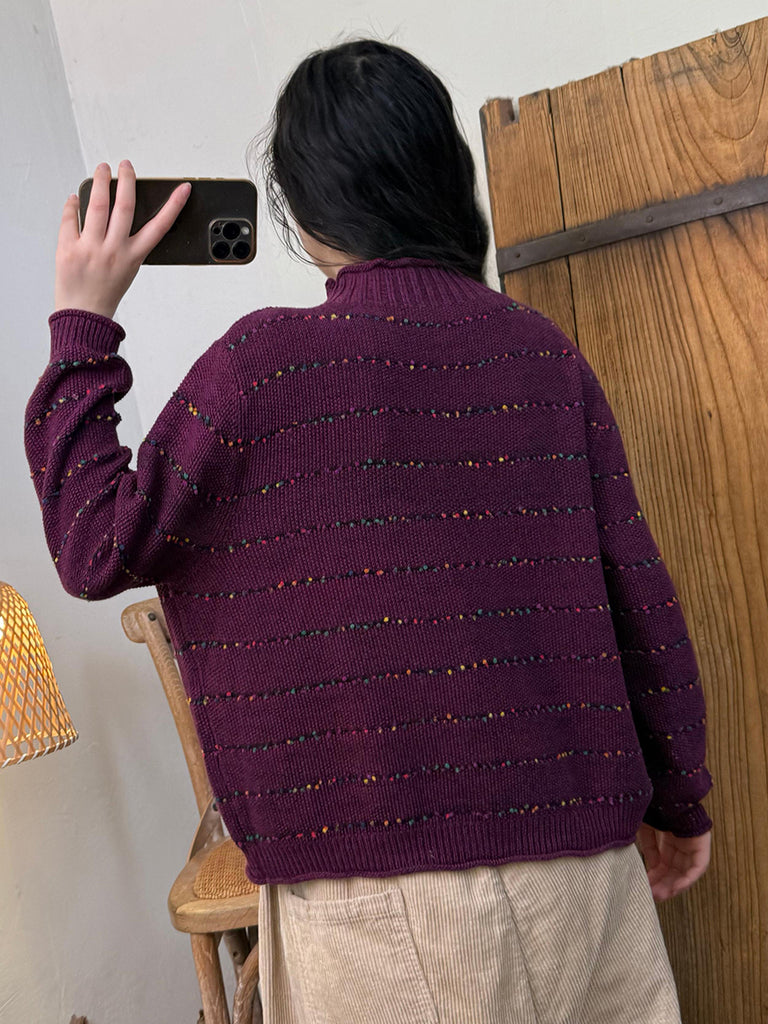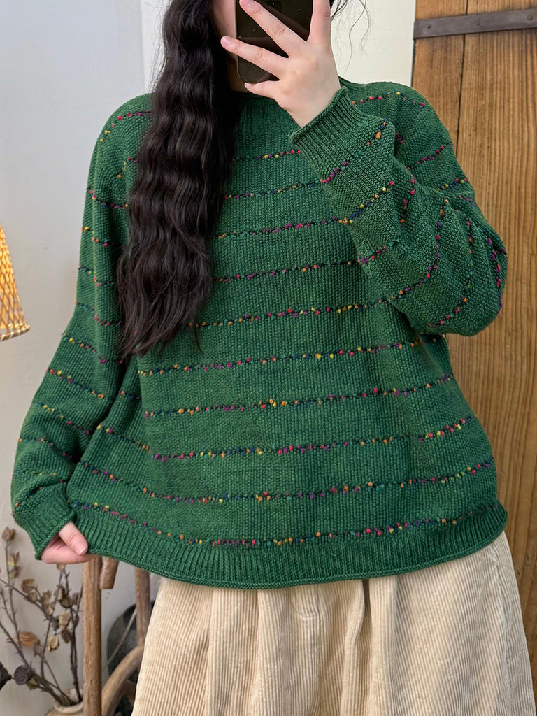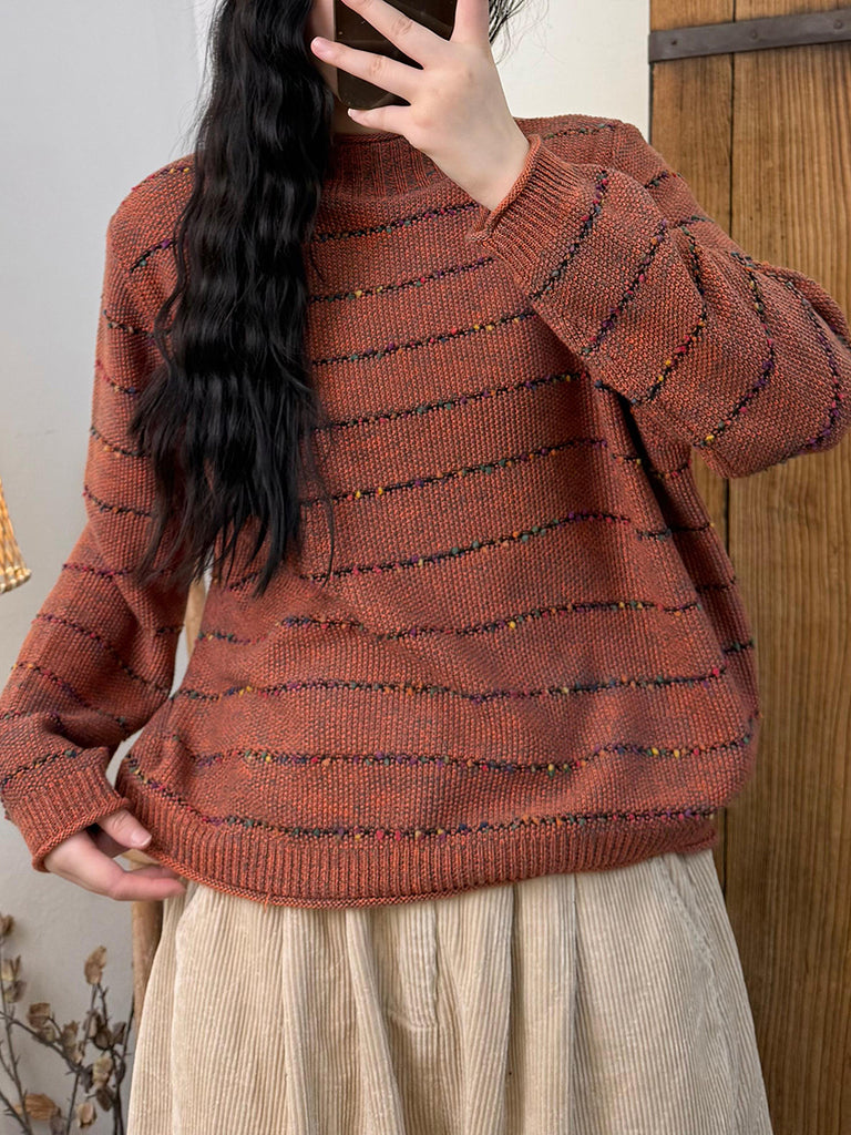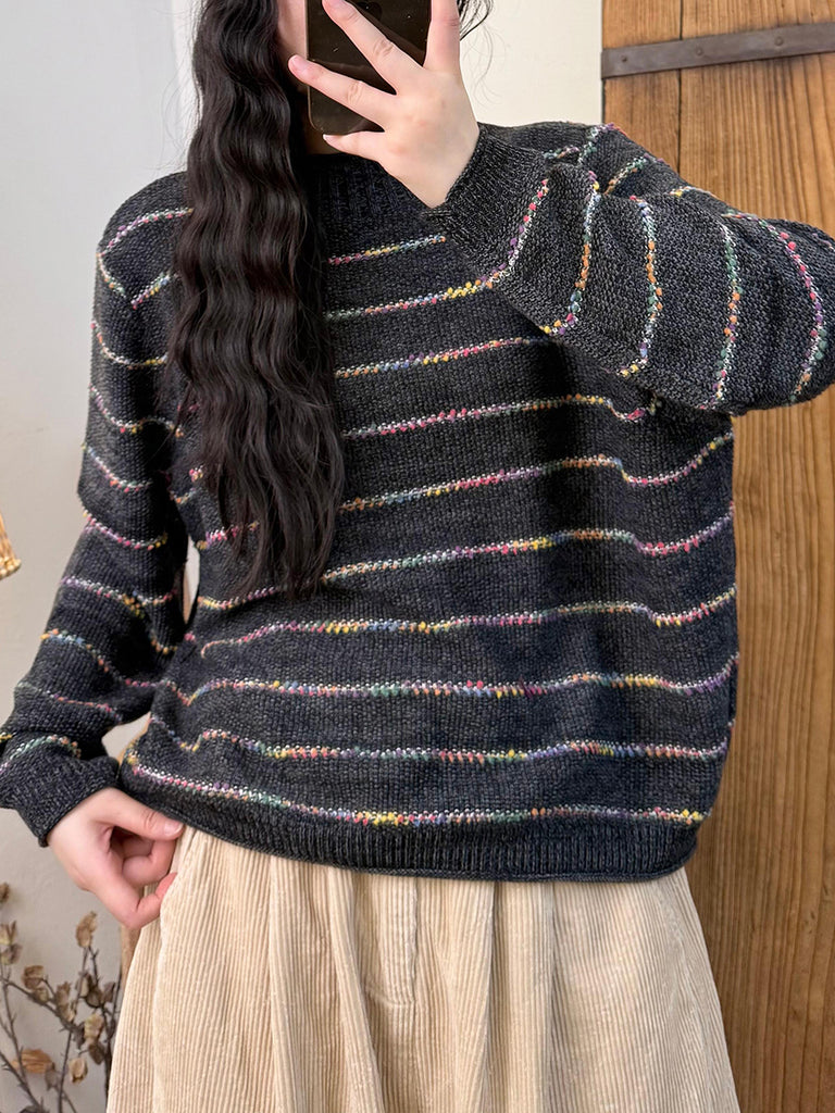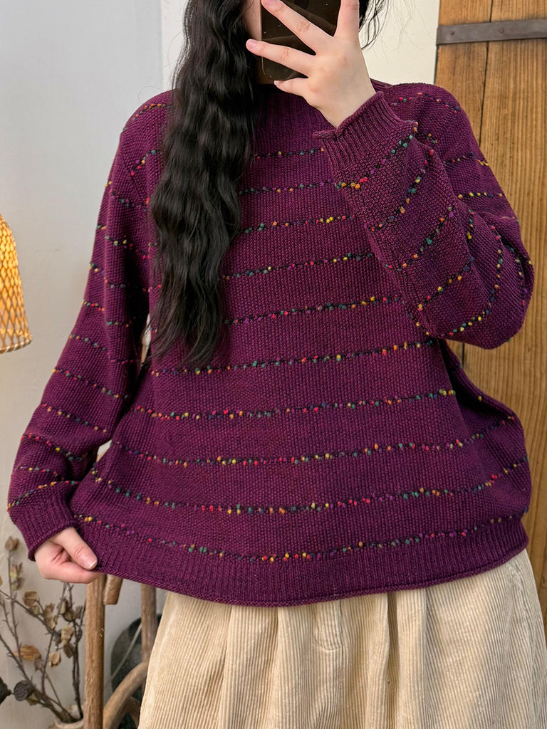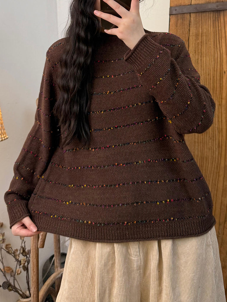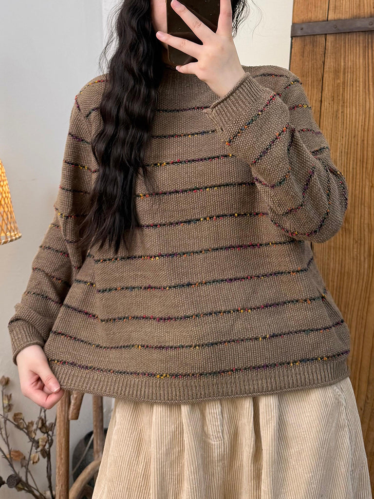 Ženski vintage prugasti pleteni pulover s polu-rolkom