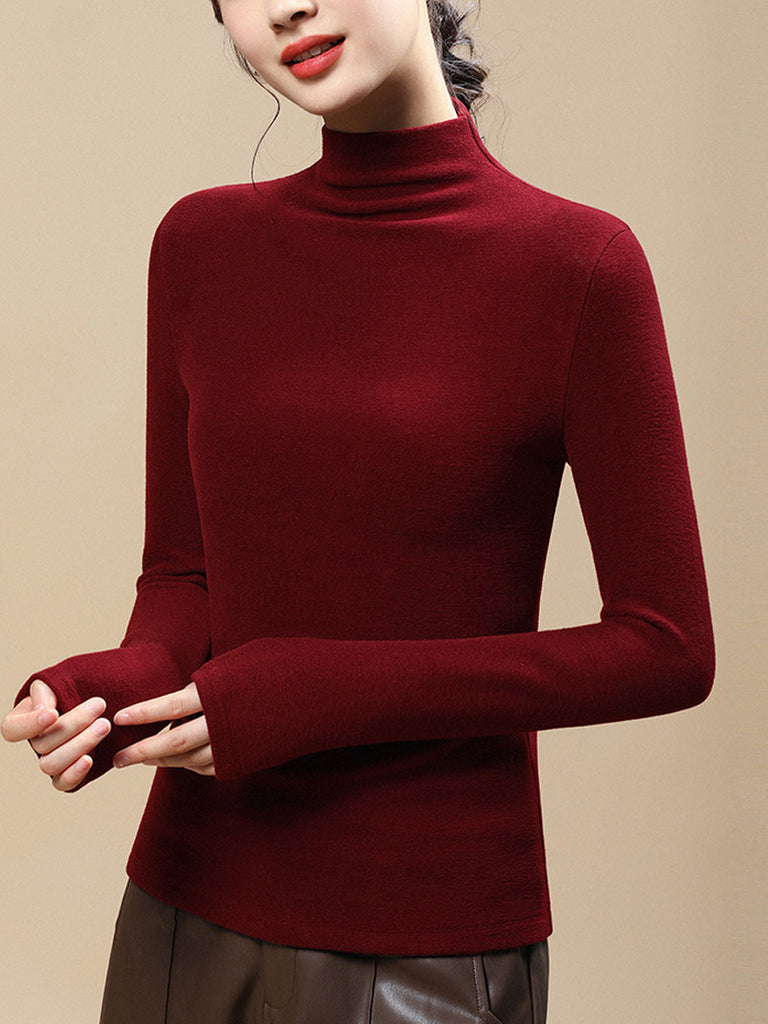 Ženska ležerna jesenska bluza s polu-rolkom u čistim bojama