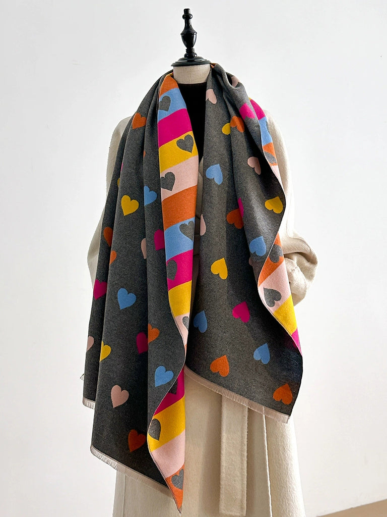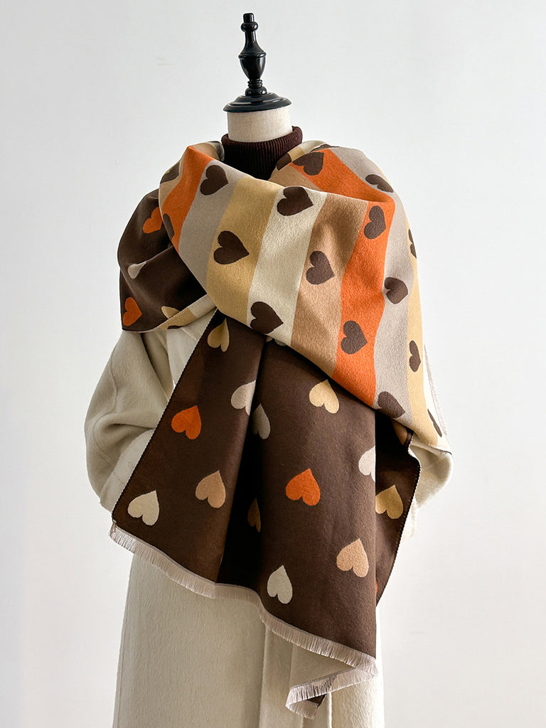 Ženski modni topli šal s prugama u obliku srca