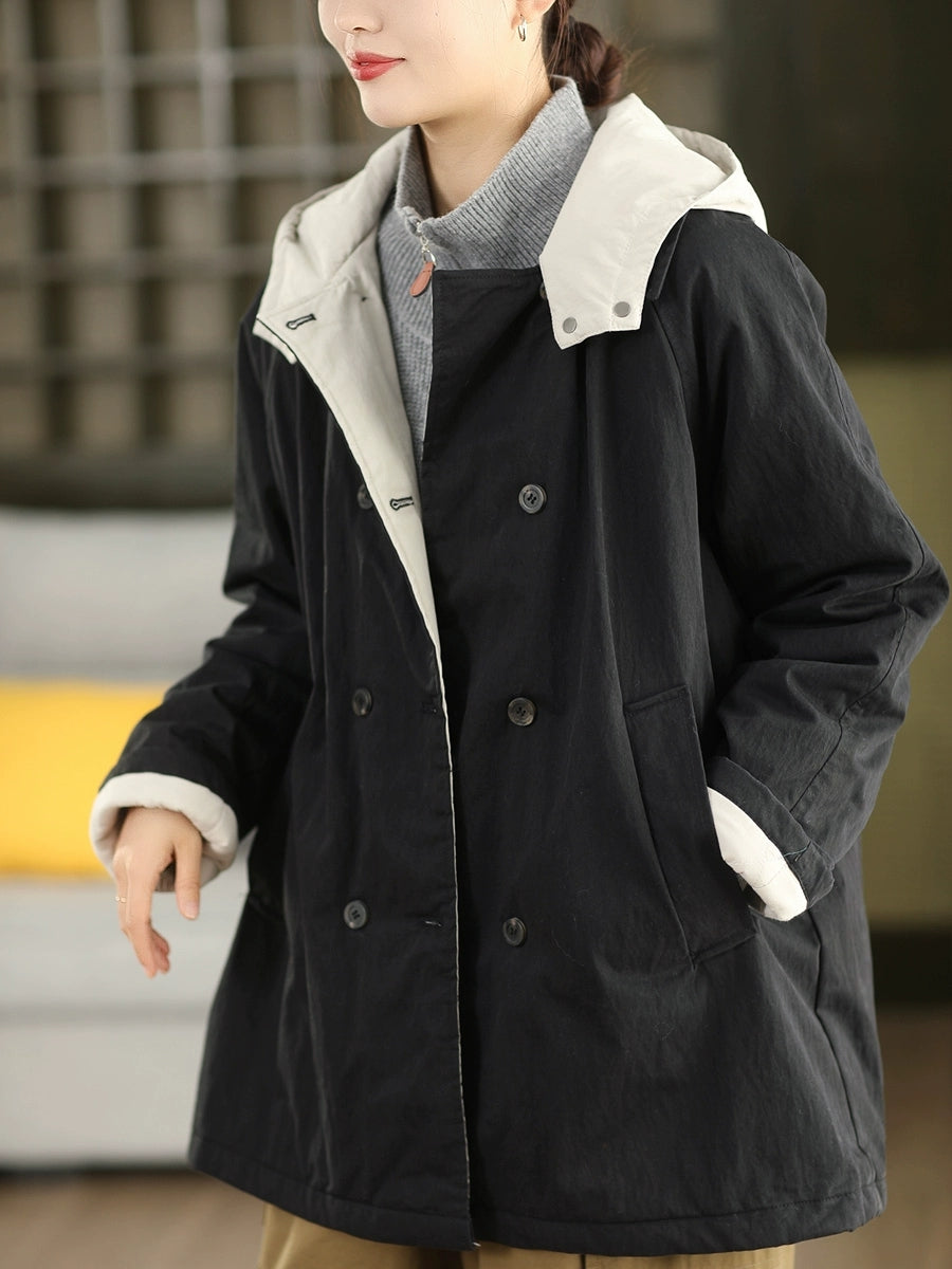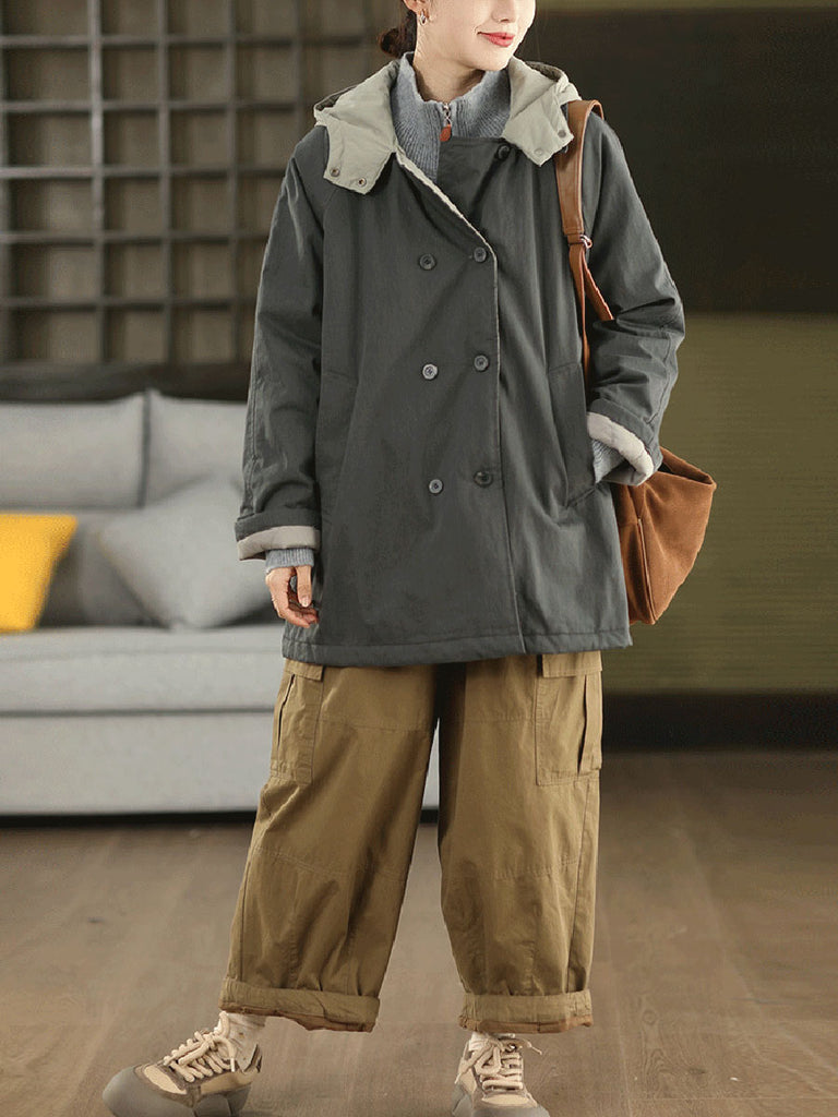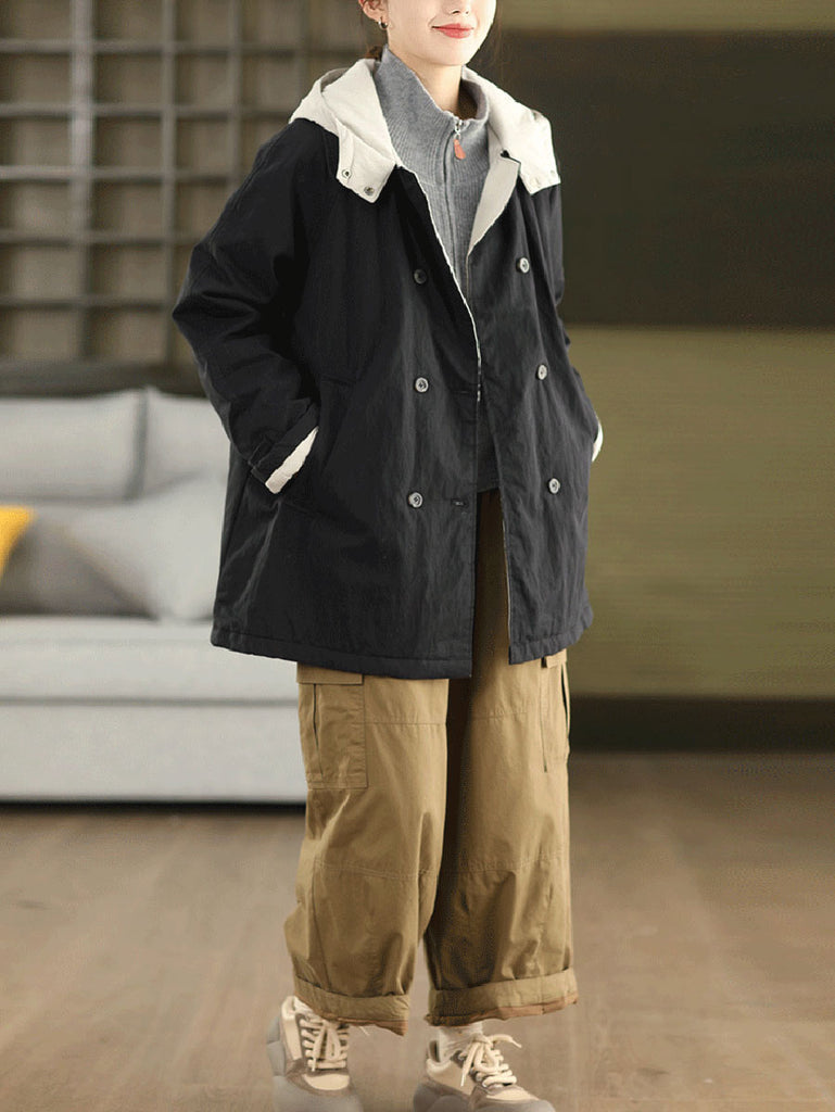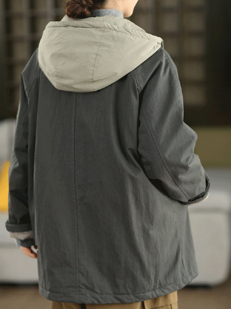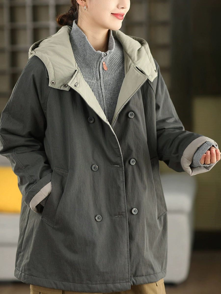 Ženski zimski ležerni kaput s kapuljačom u čistoj boji