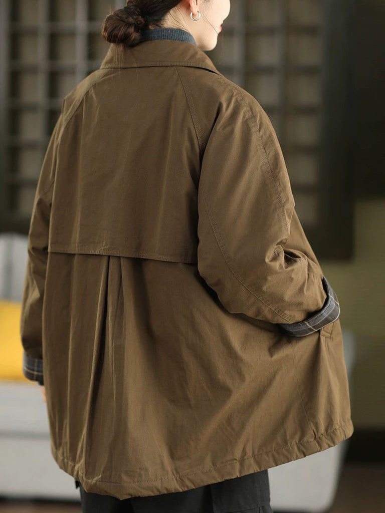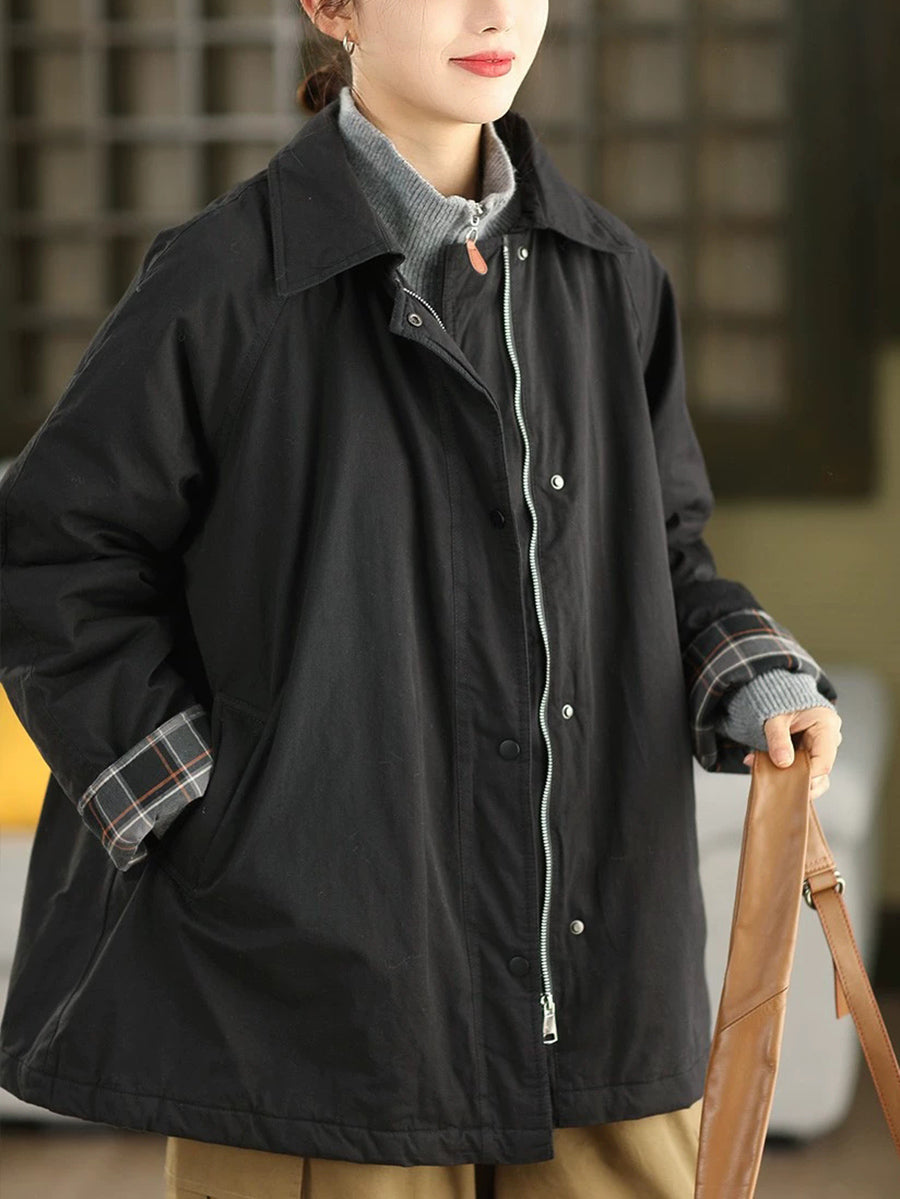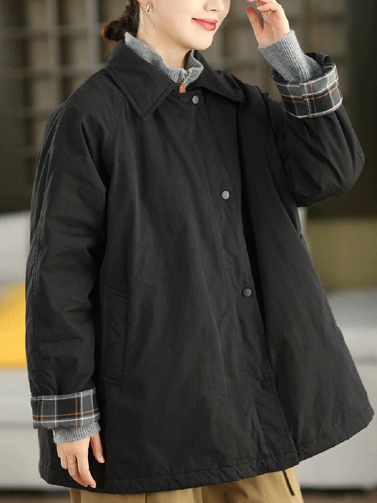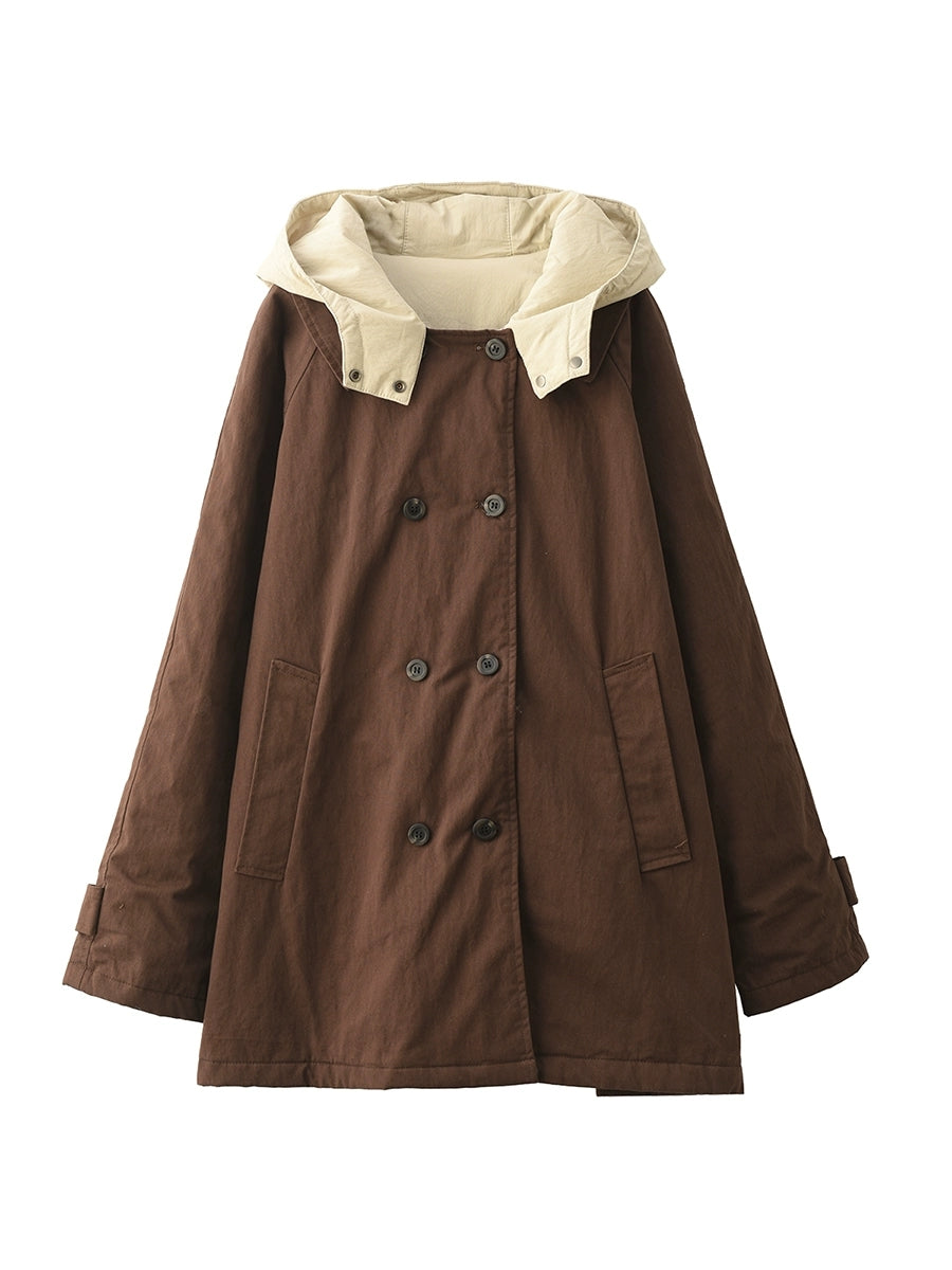 Ženski zimski ležerni kaput s kapuljačom u čistoj boji