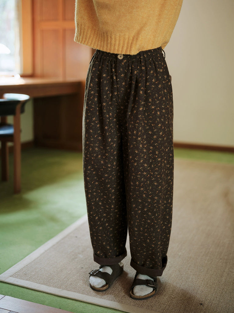 Ženske zimske vintage cvjetne harem hlače s flis podstavom