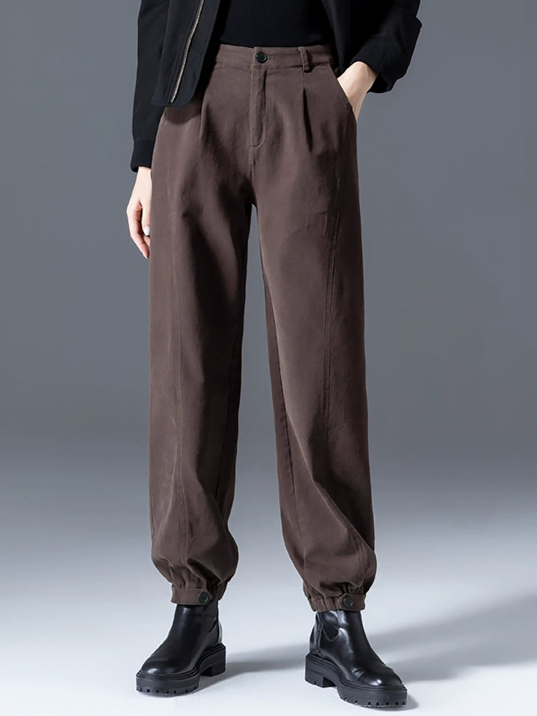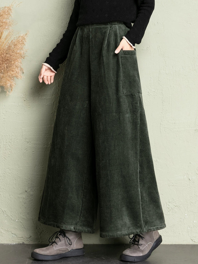 Ženske zimske ležerne hlače od čistog korduroja širokih nogavica