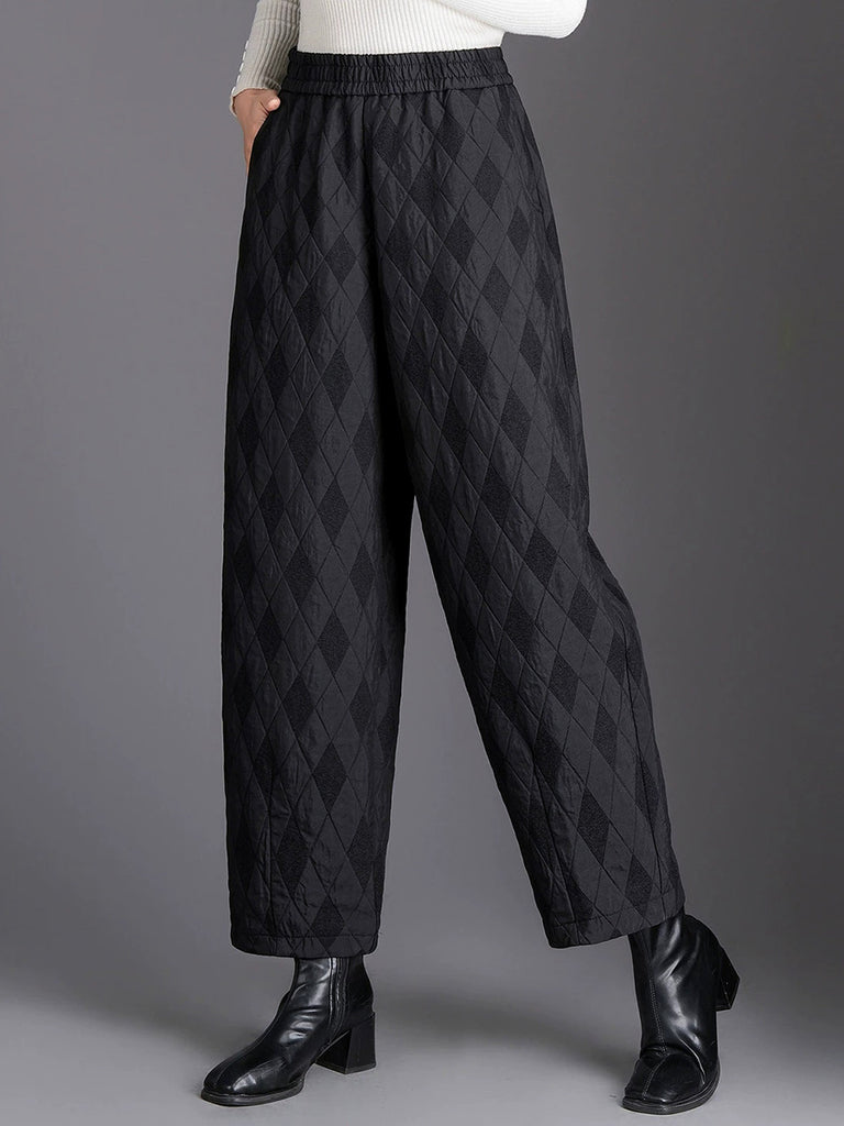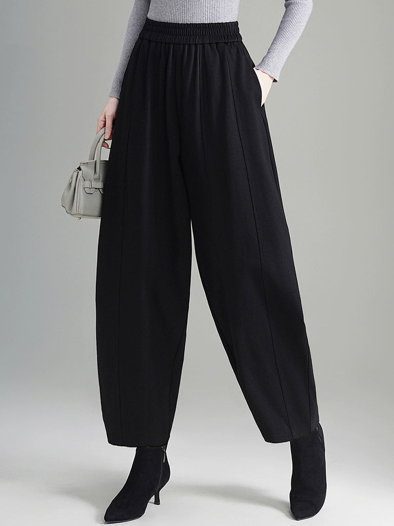 Ženske zimske vintage harem hlače s flis podstavom u čistoj boji
