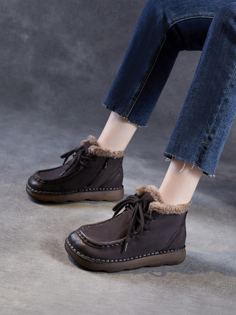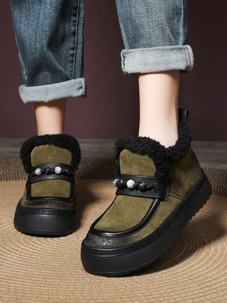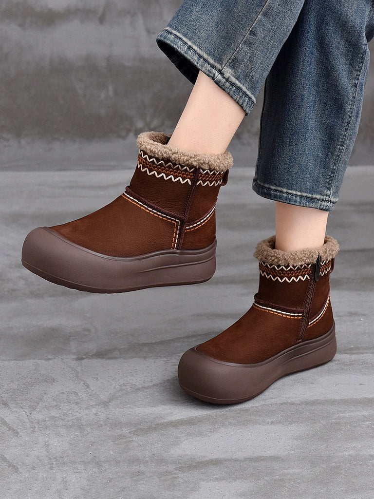 Ženske zimske čizme za snijeg od prave kože s flis podstavom