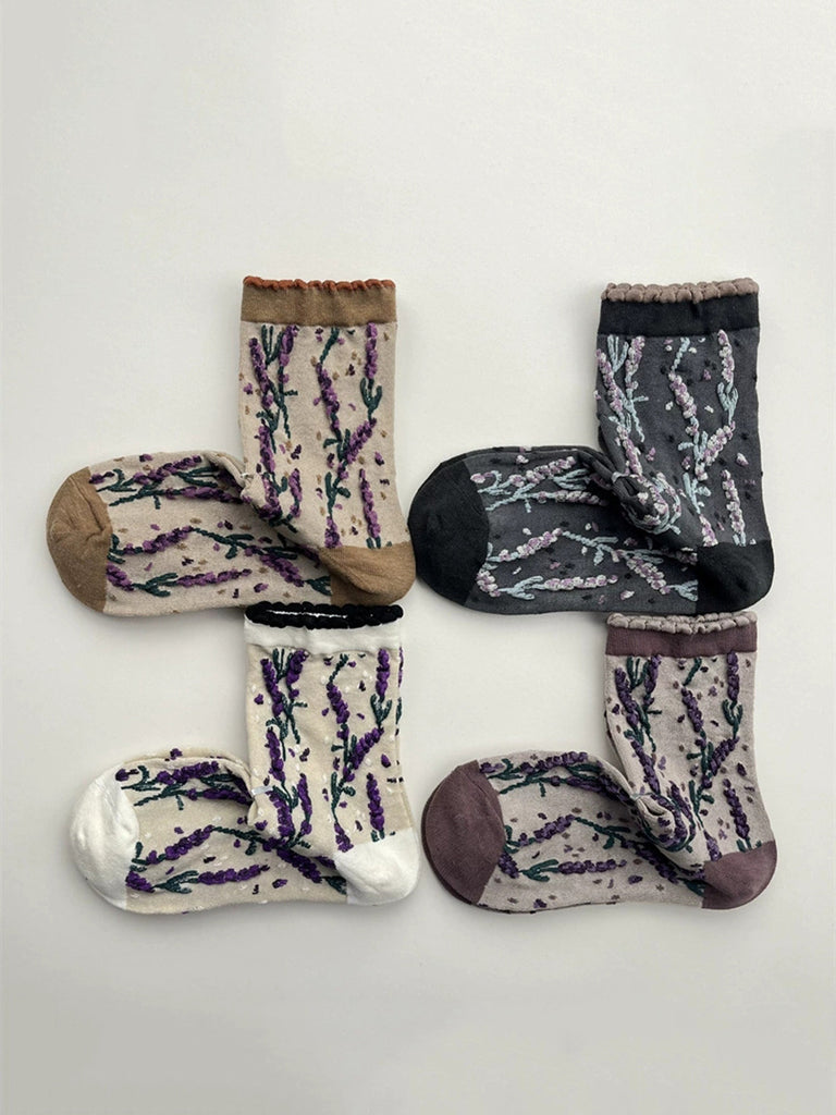 5 pari ženskih zimskih pamučnih čarapa s cvjetnim uzorkom