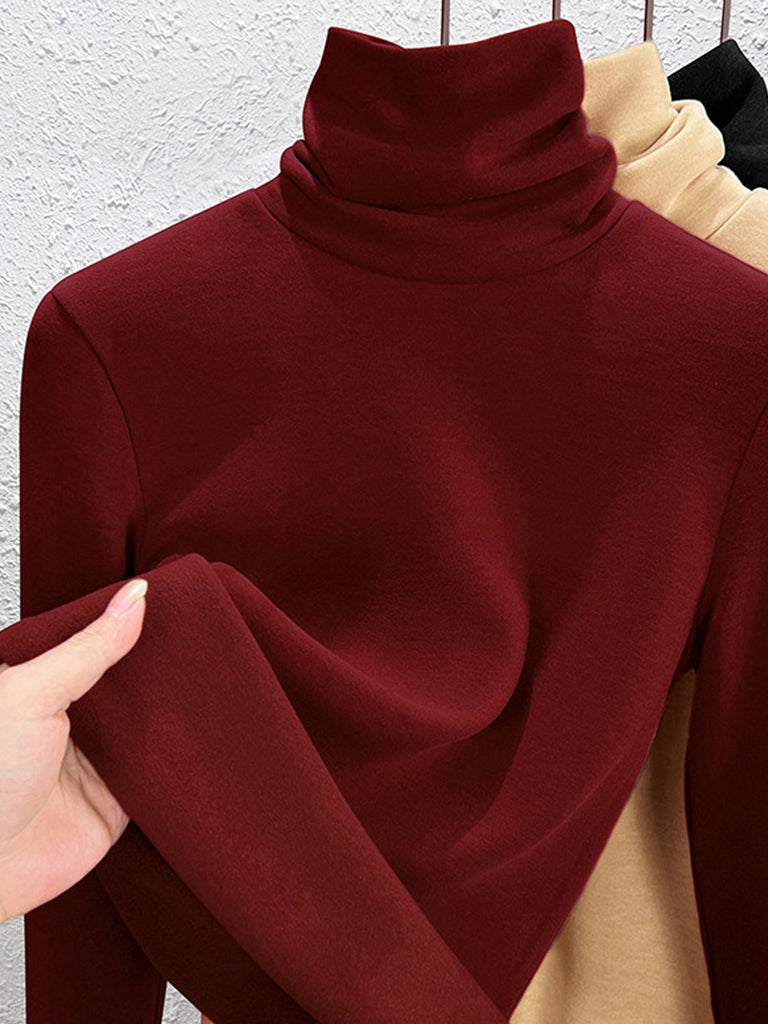 Ženska ležerna zimska bluza s dolčevitom u čistoj boji