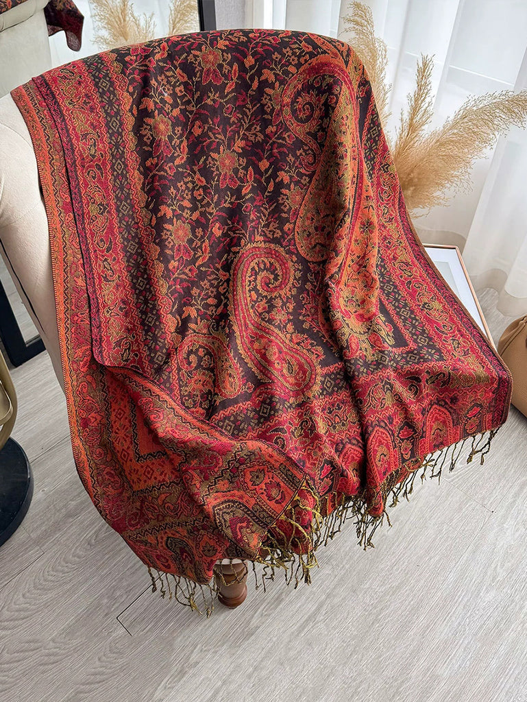 Ženski etnički šal s resicama i cvjetnim uzorkom