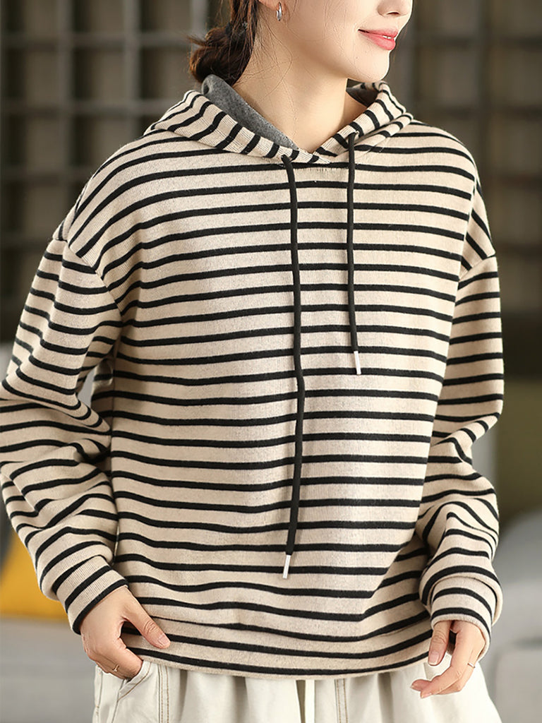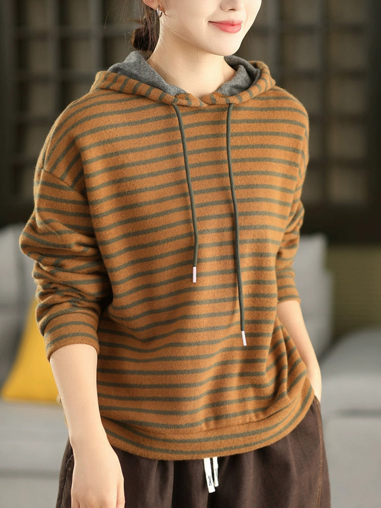 Ženska vintage jesenska prugasta majica s kapuljačom od 100% pamuka