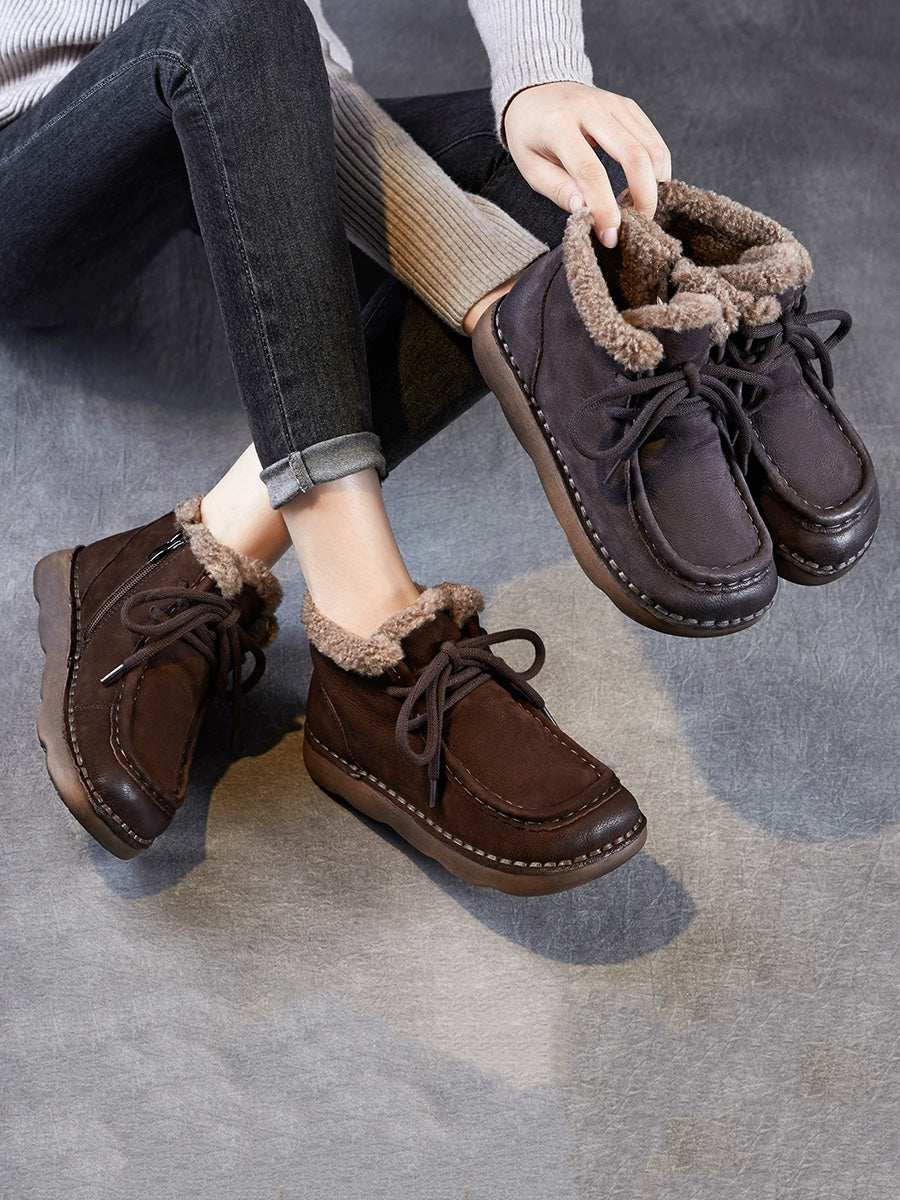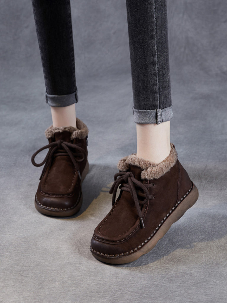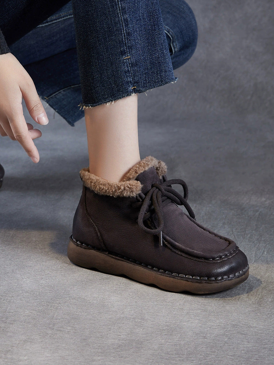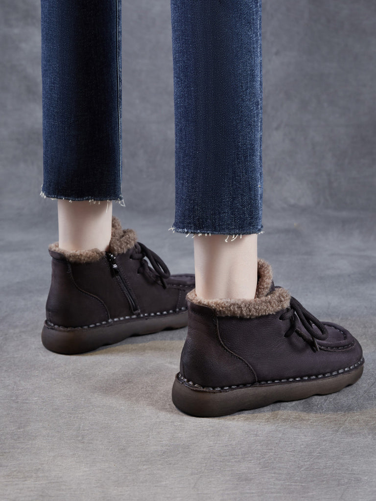 Ženske zimske čizme do gležnjeva od kože s flis podstavom