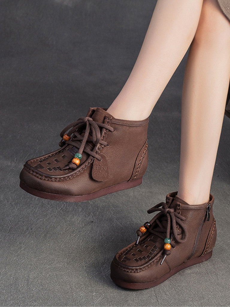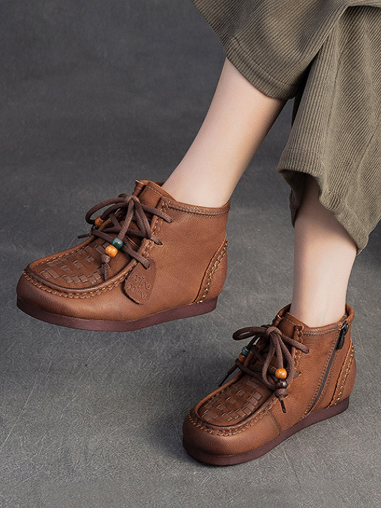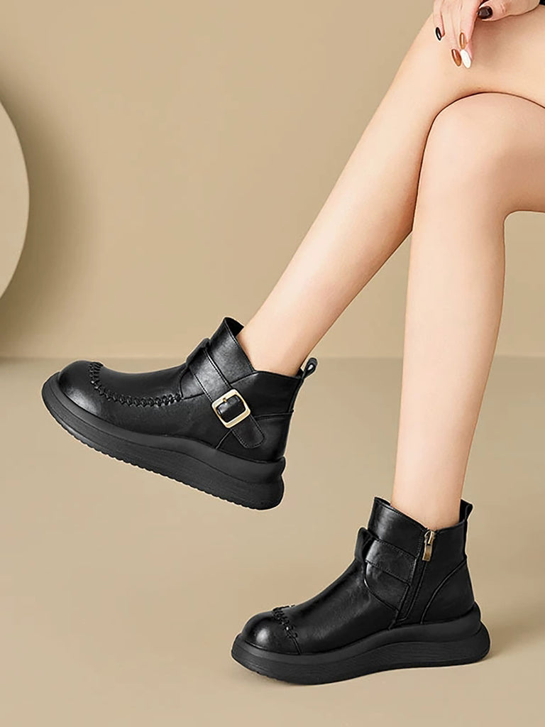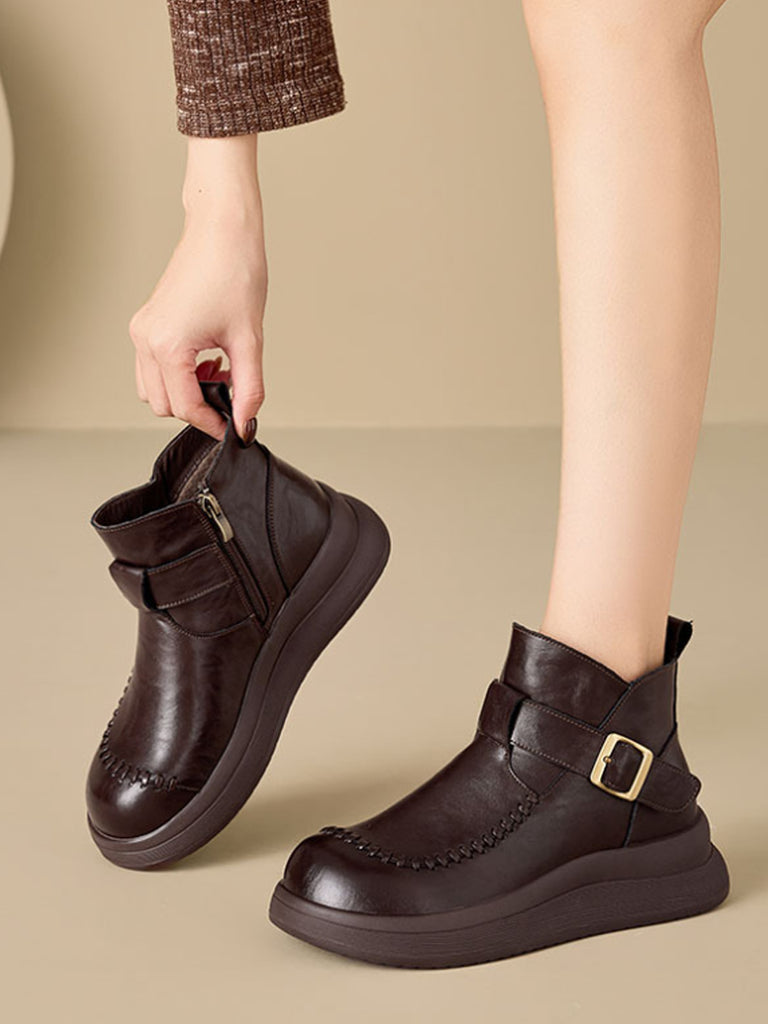 Ženske zimske čizme za gležnjače od prave kože s patentnim zatvaračem