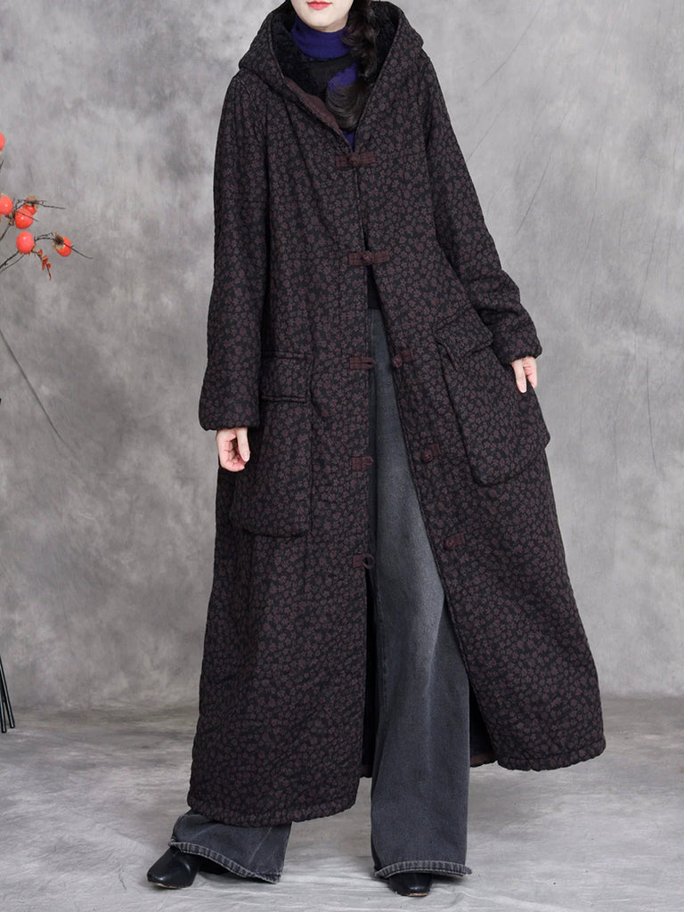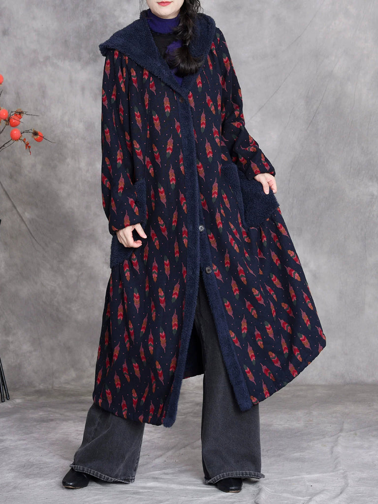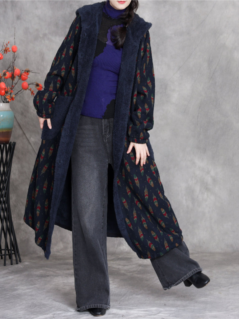Ženski vintage zimski umjetnički cvjetni flis kaput s kapuljačom