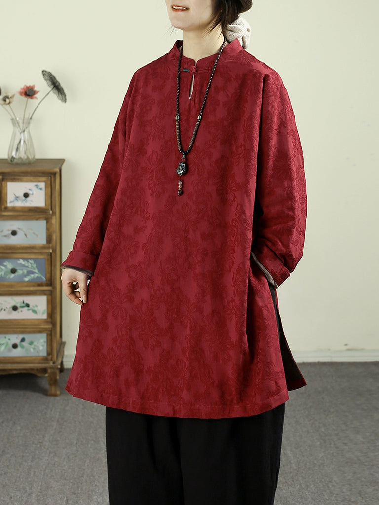 Ženska zimska retro žakard košulja s podstavom od 100% lana i flisa
