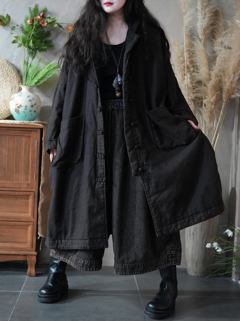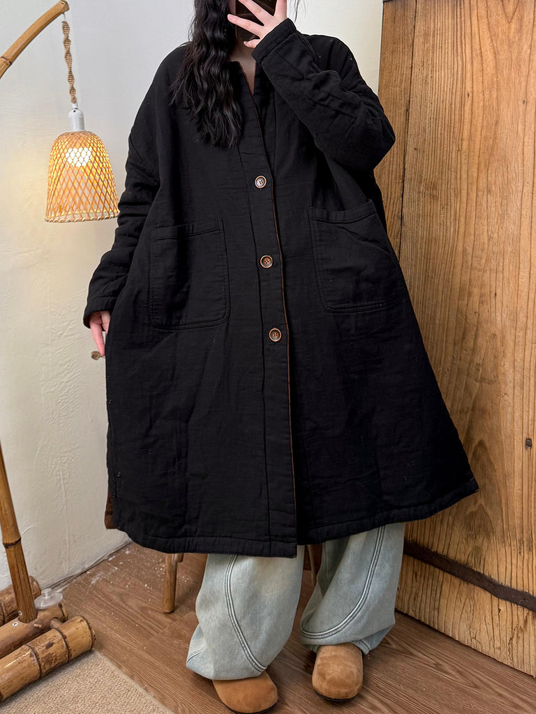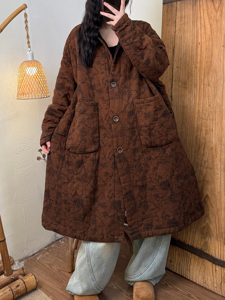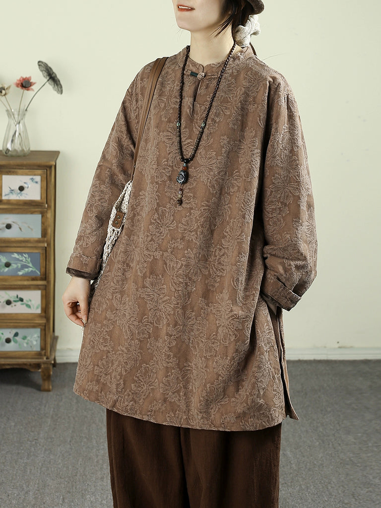 Ženski vintage zimski kaput od korduroja s V-izrezom i cvjetnim uzorkom