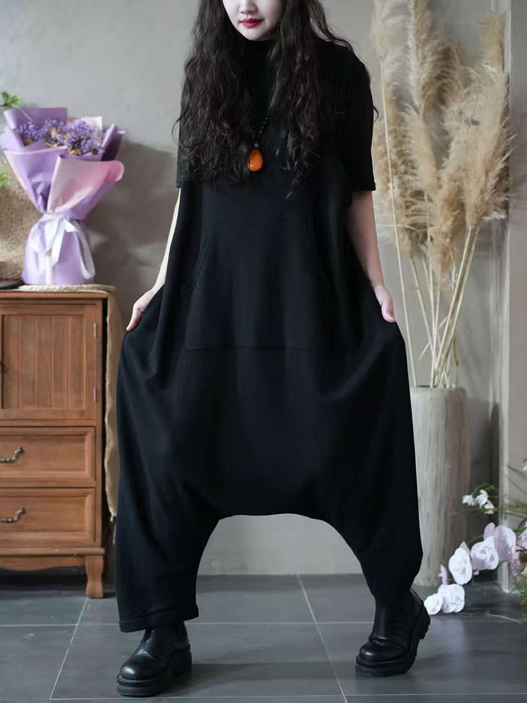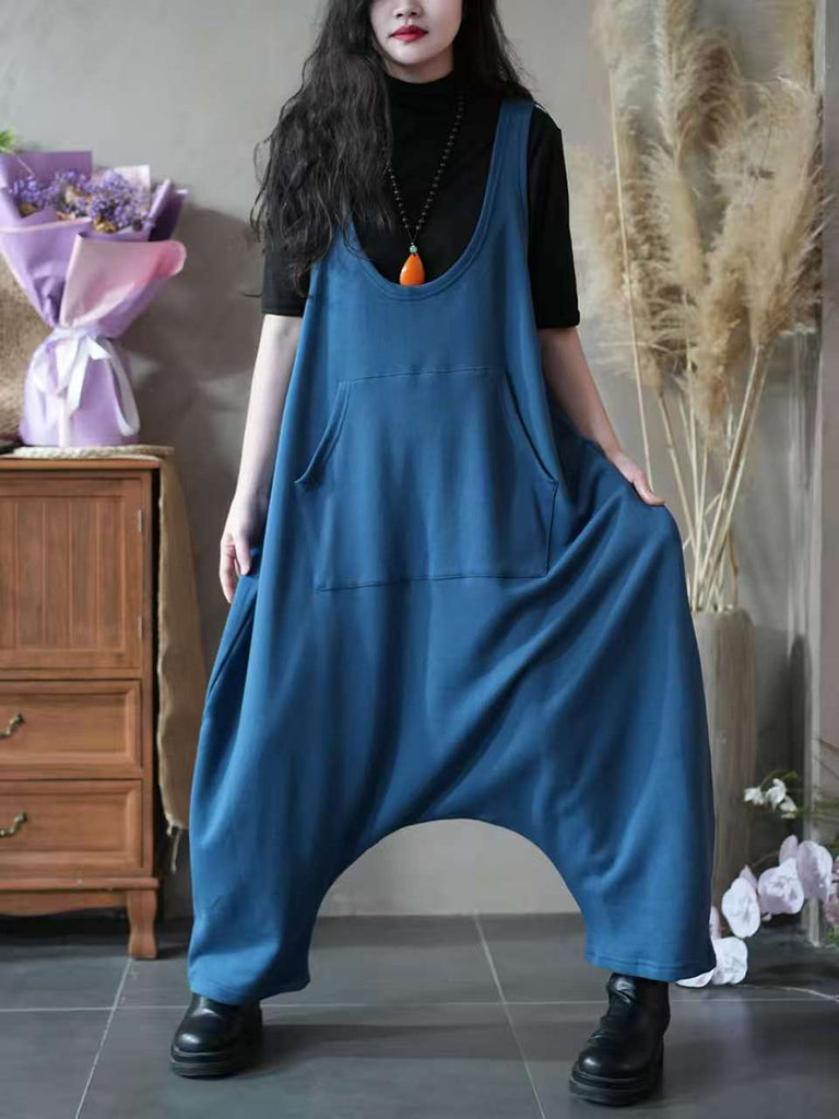 Ženski vintage ležerni kombinezoni čistih boja s niskim međunožjem