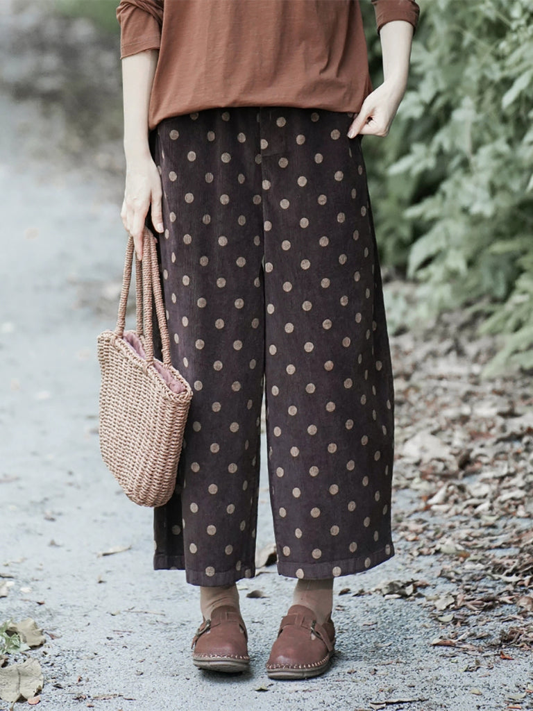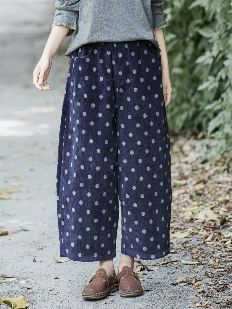 Ženske zimske retro točkaste pamučne hlače širokih nogavica
