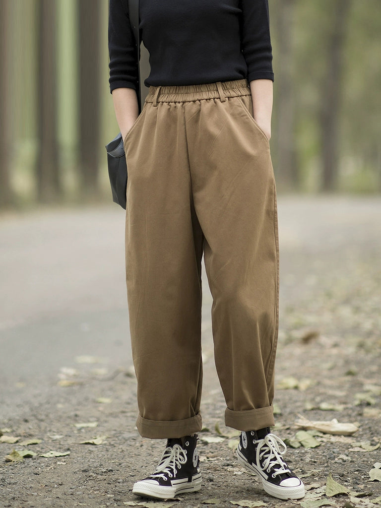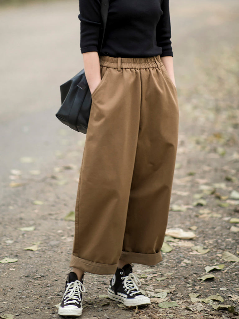 Ženske zimske harem hlače od 100% pamuka, čiste boje, s flis podstavom