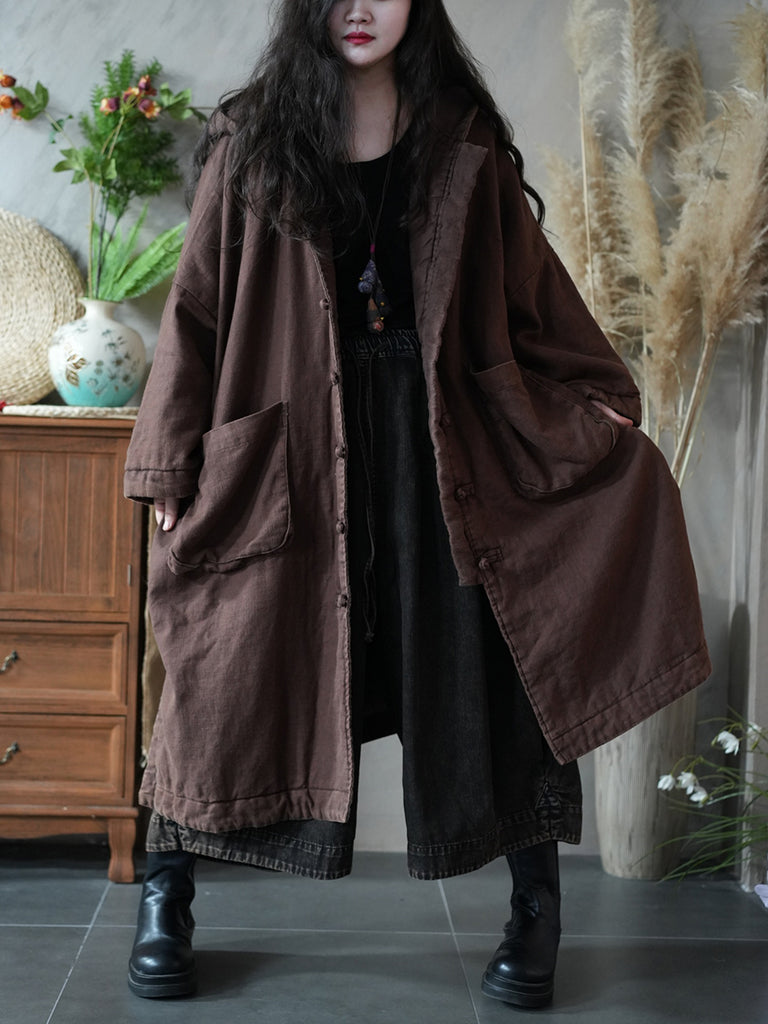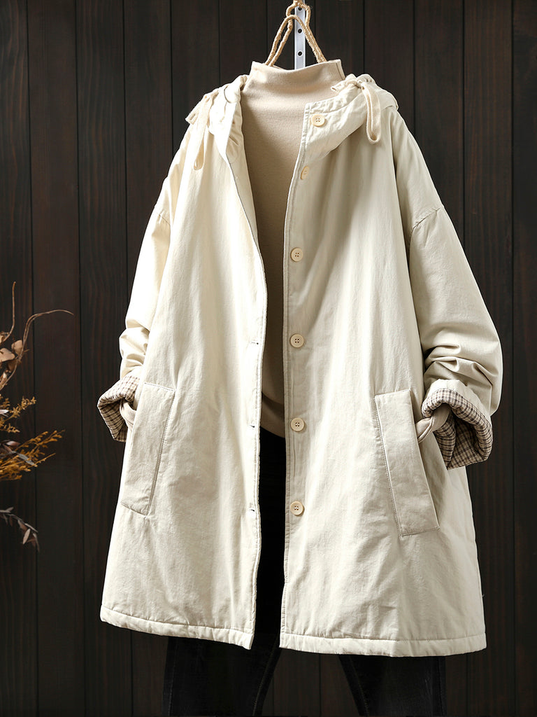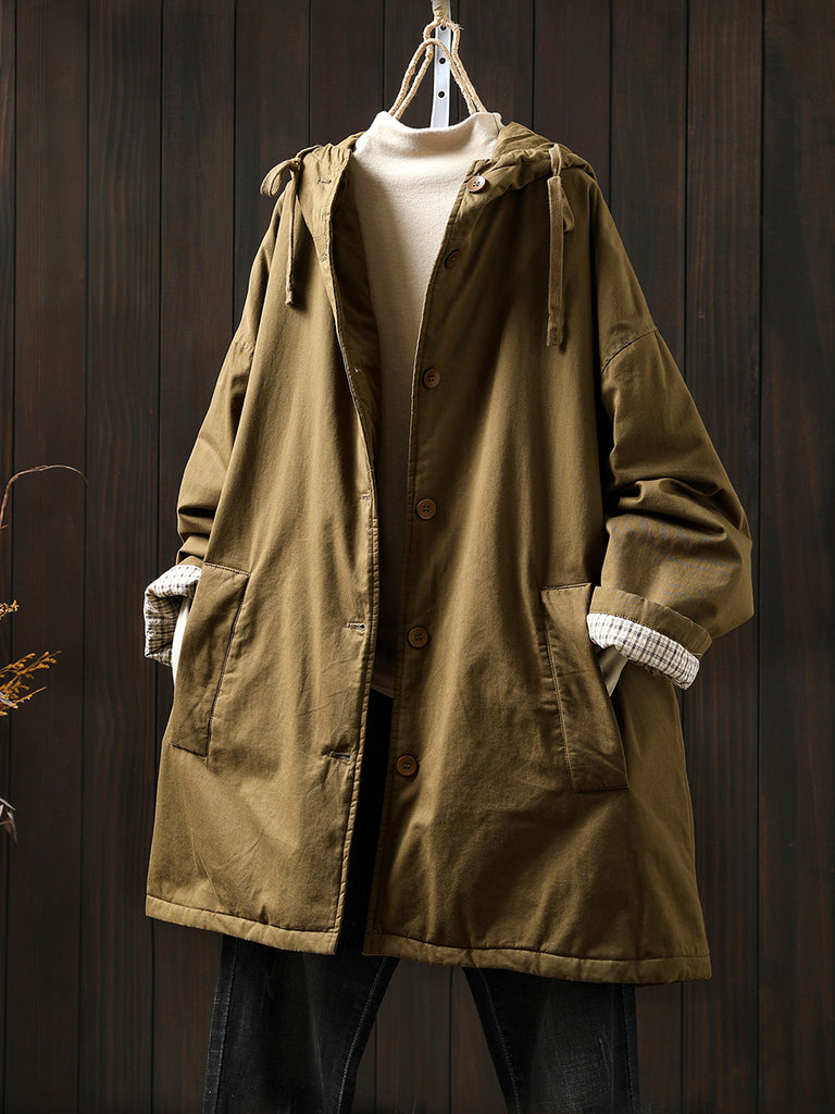 Ženski vintage zimski kaput s kapuljačom u čistoj boji