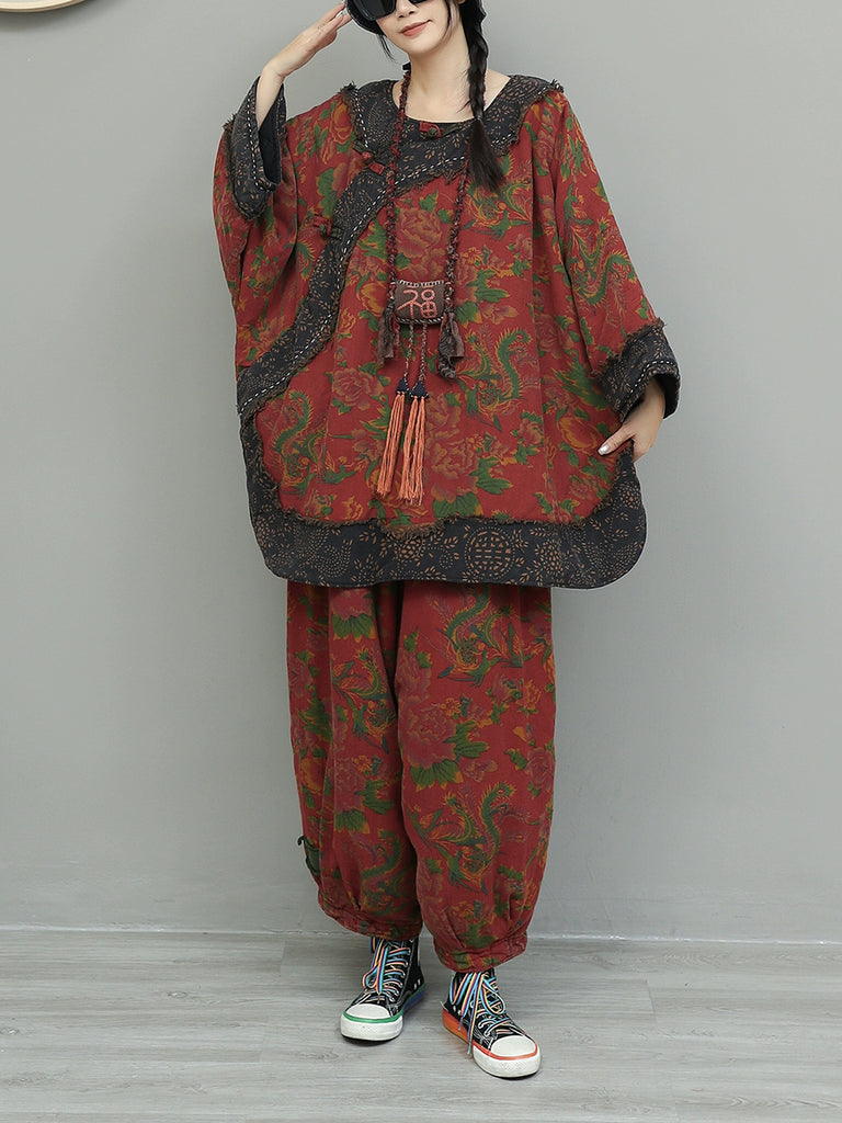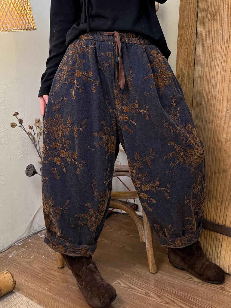 Ženske zimske retro harem hlače s cvjetnim žakard uzorkom