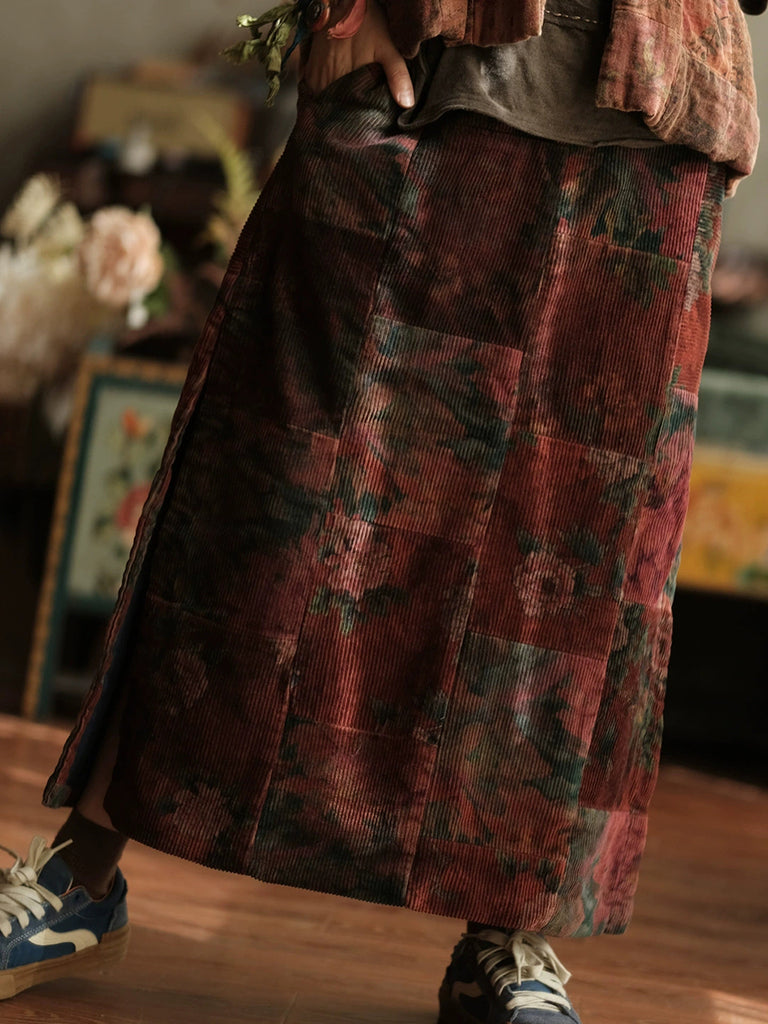 Ženska jesenska retro cvjetna patchwork ravna suknja