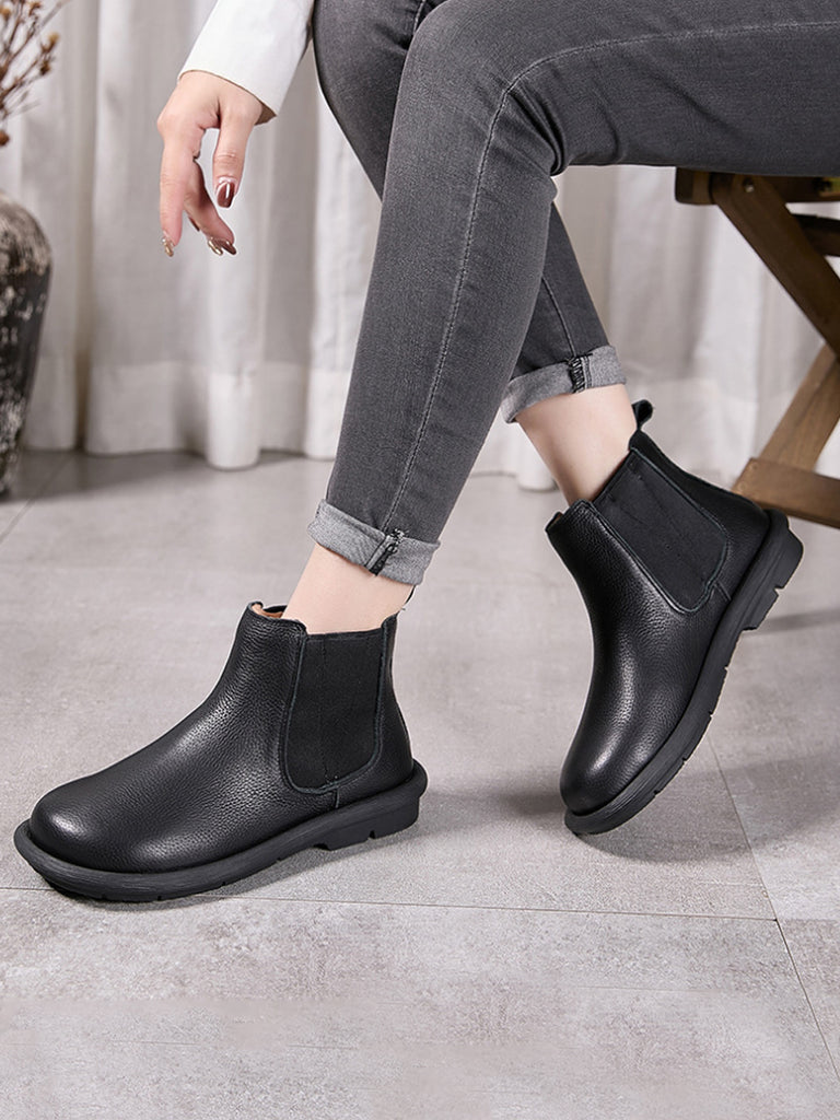 Ženske zimske Chelsea čizme od prave kože s flis podstavom