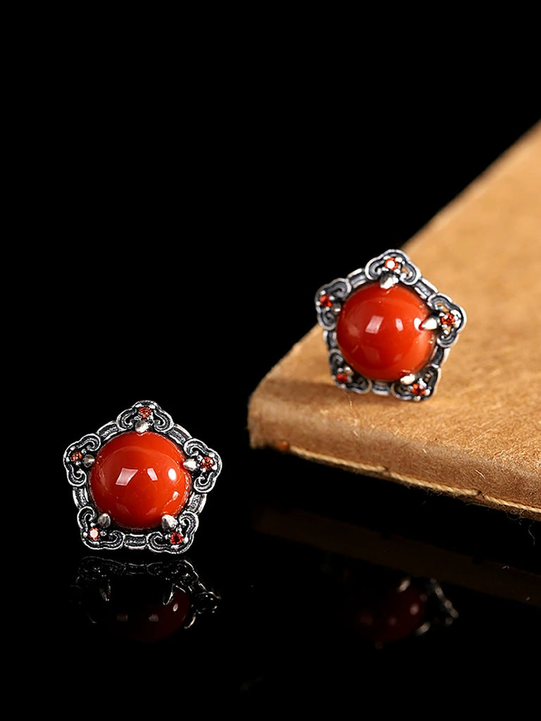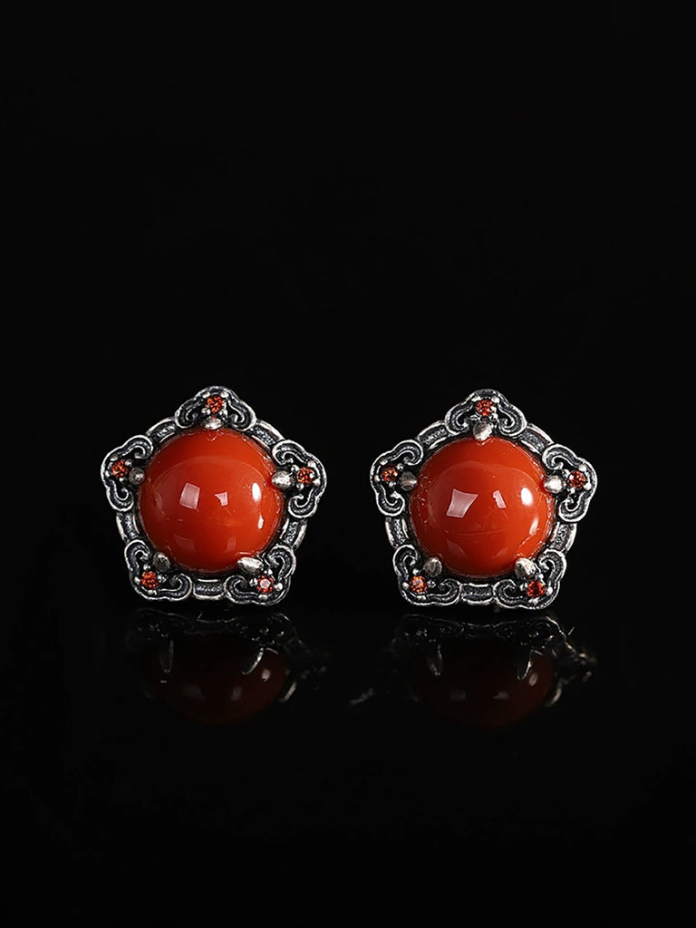 Ženske vintage naušnice od srebrnog crvenog ahata S925