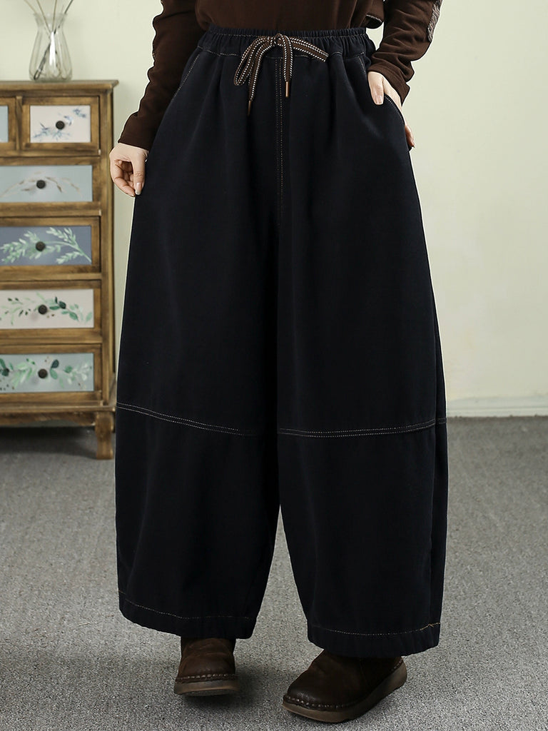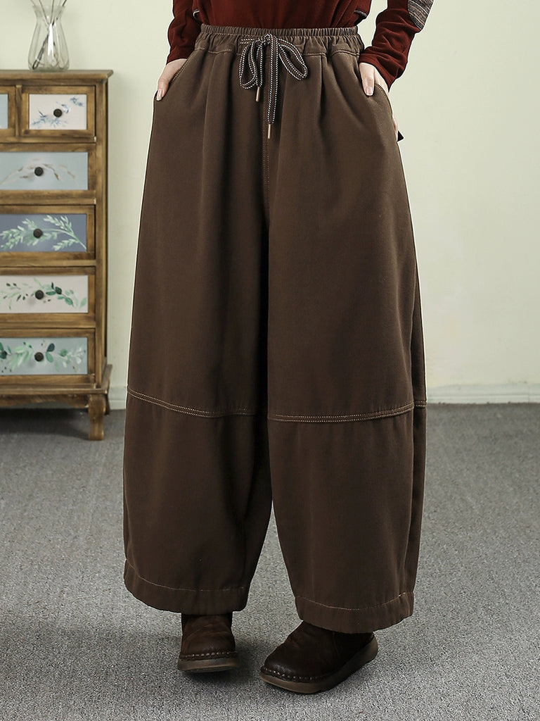 Ženske zimske retro harem hlače s flis podstavom u čistoj boji