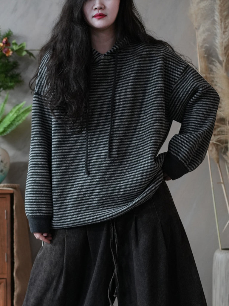 Ženska zimska ležerna prugasta majica s kapuljačom