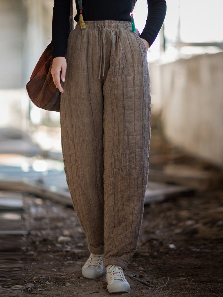 Ženske zimske retro harem hlače u čistoj boji s podstavom