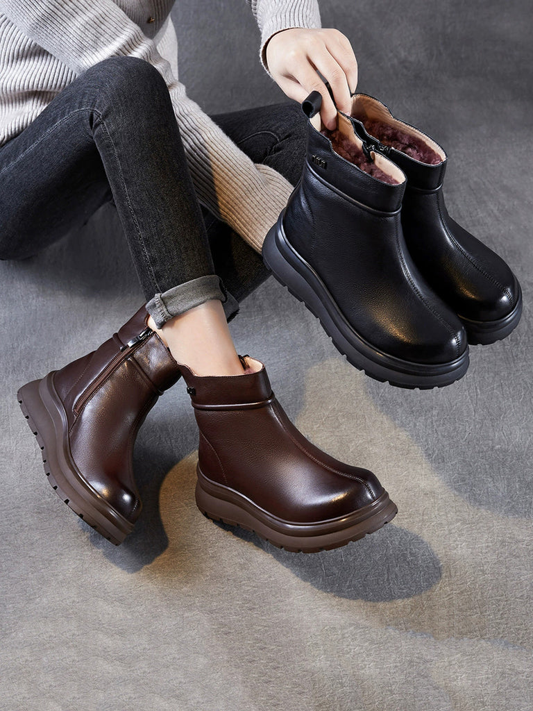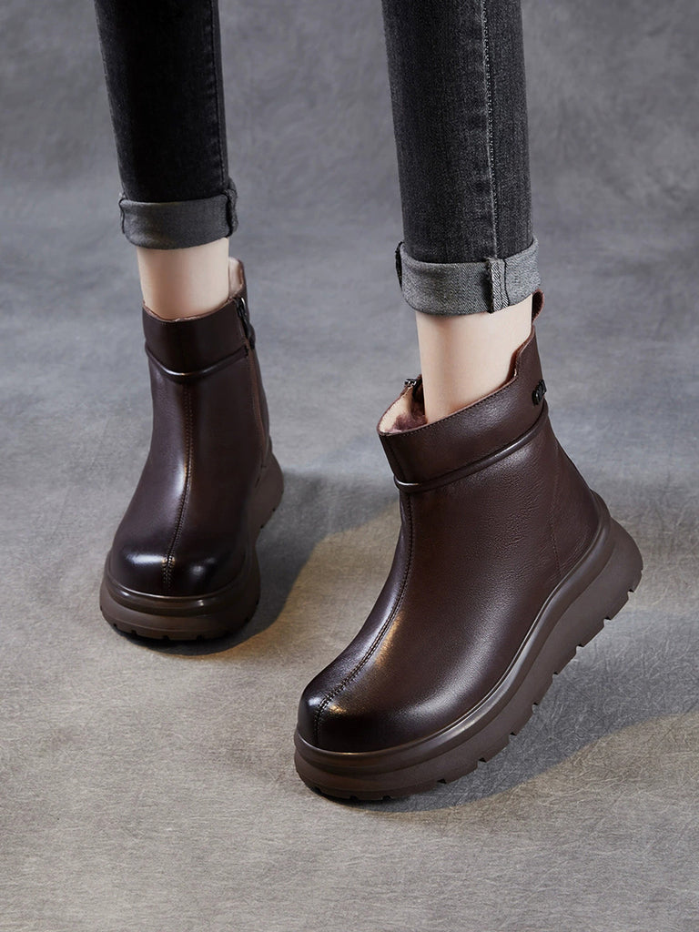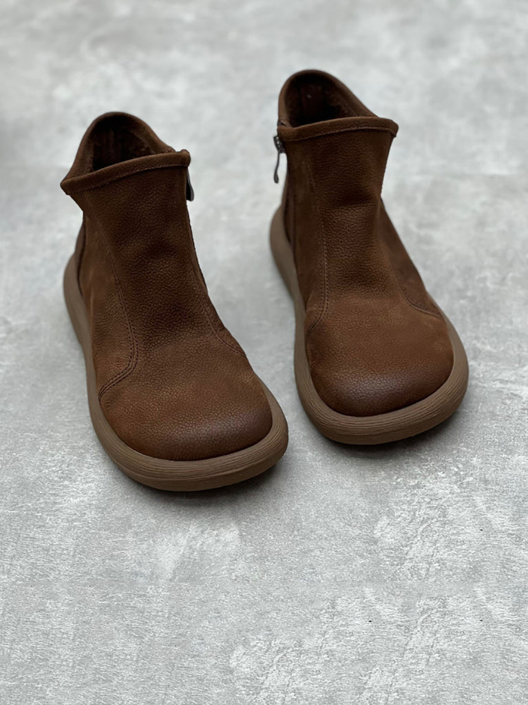 Ženske zimske ravne čizme od meke kože s patentnim zatvaračem